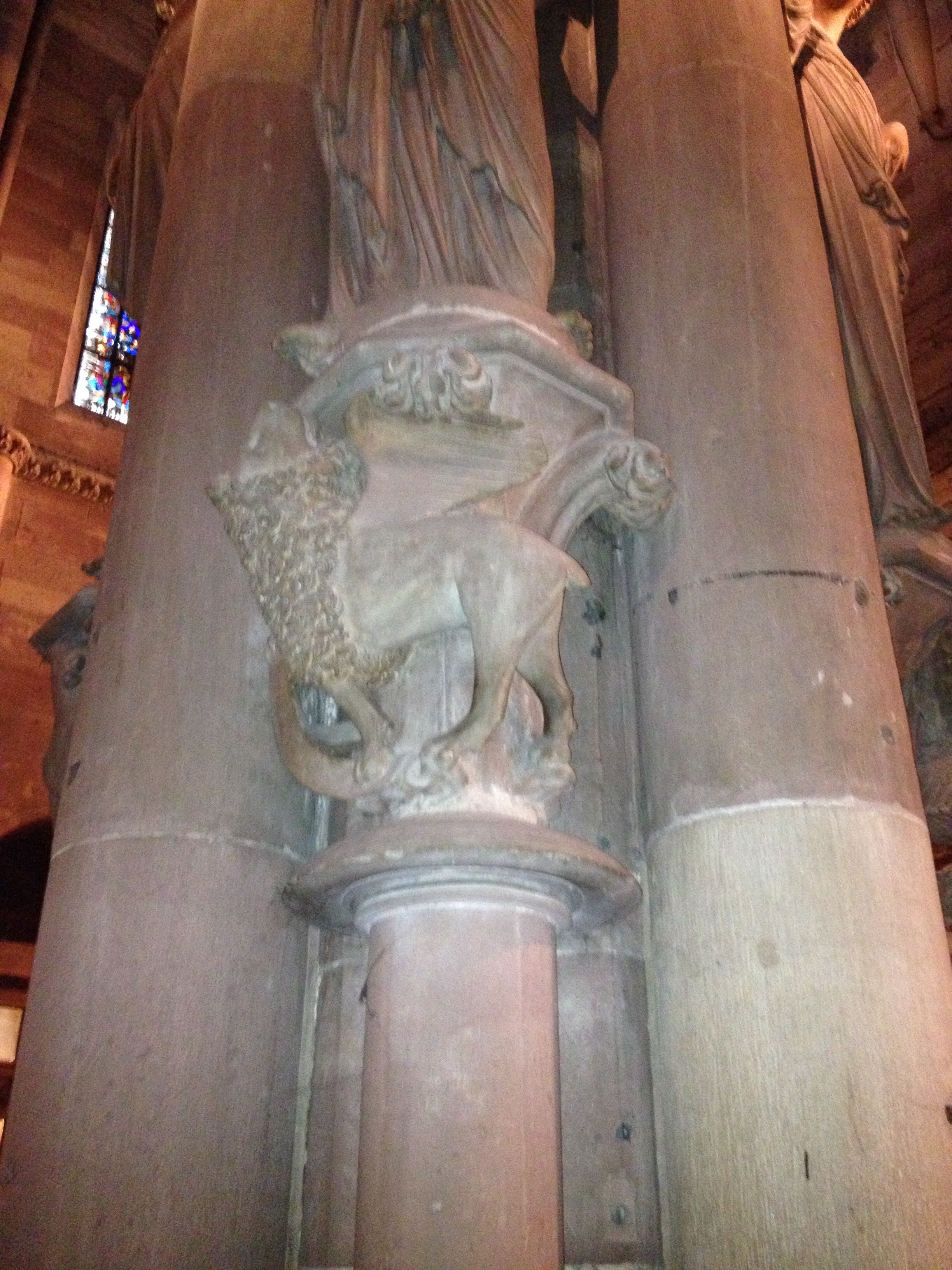 Strasbourg is just across the Rhine from Germany, and had been in dispute between the Germans and the French ever since the Franco-Prussian War of 1870-71.  I know next to nothing about that war, but I do know that Strasbourg had great symbolic importance for the Free French, led by Charles de Gaulle from exile in England.  He insisted that only French soldiers should liberate Strasbourg, and so it was.  Strasbourg and its Cathedral had enough symbolic importance that Hitler himself had visited in 1940.  Hitler declared that he intended the Cathedral to be a place of sanctuary for the German people, or possibly a memorial to the Unknown Soldier. But in the closing days of the war, while the Allies moved across France from Normandy toward Germany, French forces were assigned to recapture Strasbourg and above all to liberate the beloved Cathedral.  Liberation took place on November 22, 1944.