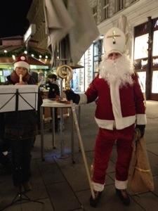 St. Nicholas appears at Christmas in Austria, but nobody sits on his lap. He is just a benign presence in a bishop’s miter. There’s live music everywhere, even on the streets. May we all hear the beautiful and hopeful music of the season.