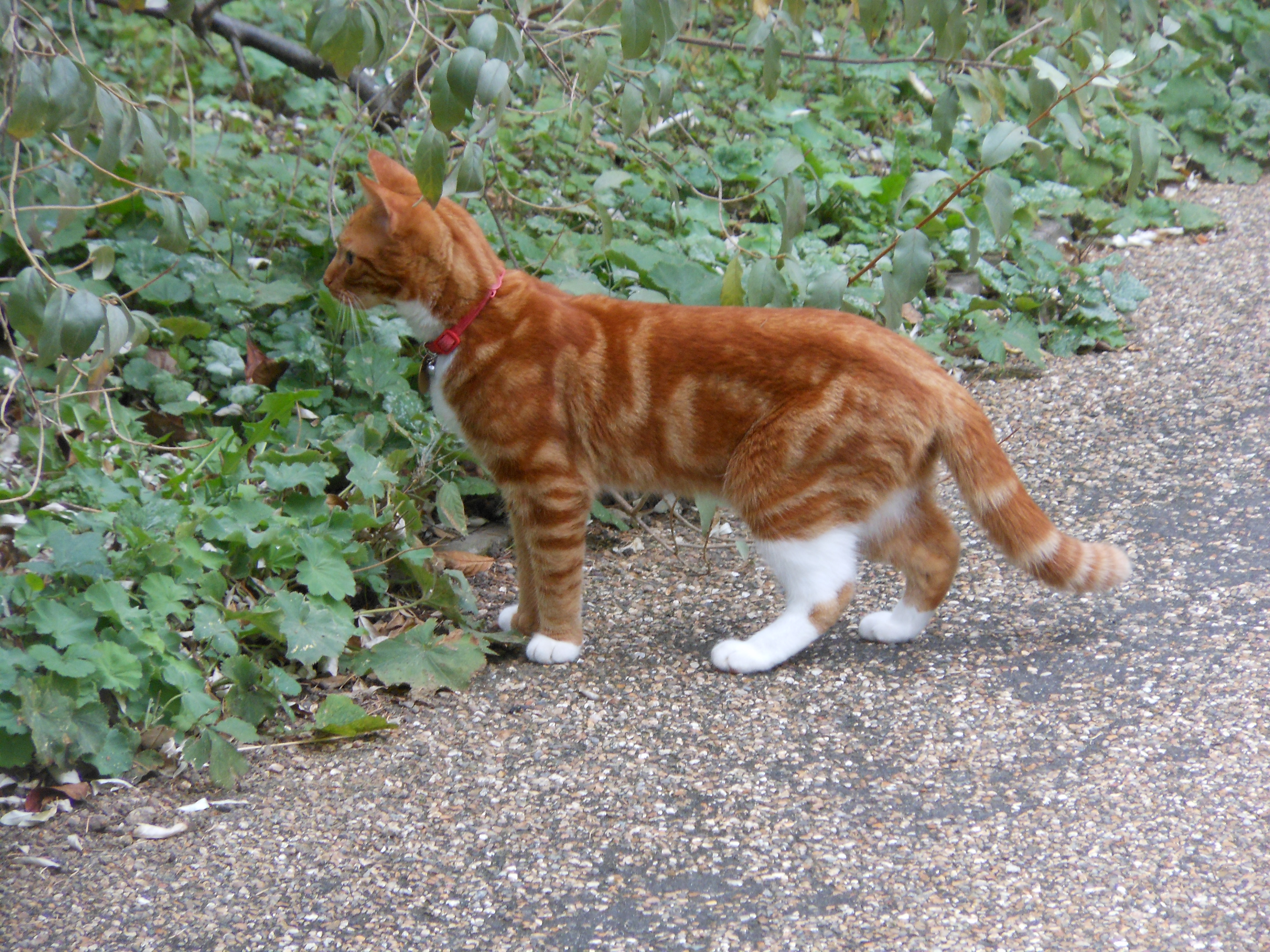 Then he turned around and very briefly glanced at me, the tourist excitedly taking his picture. Jock certainly has some of Sir WInston’s charisma and supreme self-confidence. I also think some of Sir Winston’s political acumen has already rubbed off on Jock. He is a busy cat with countless demands on his time. But like any good politician, he took a moment to pose for me. He showed off the “target” design on his side that marks him as a classic tabby.