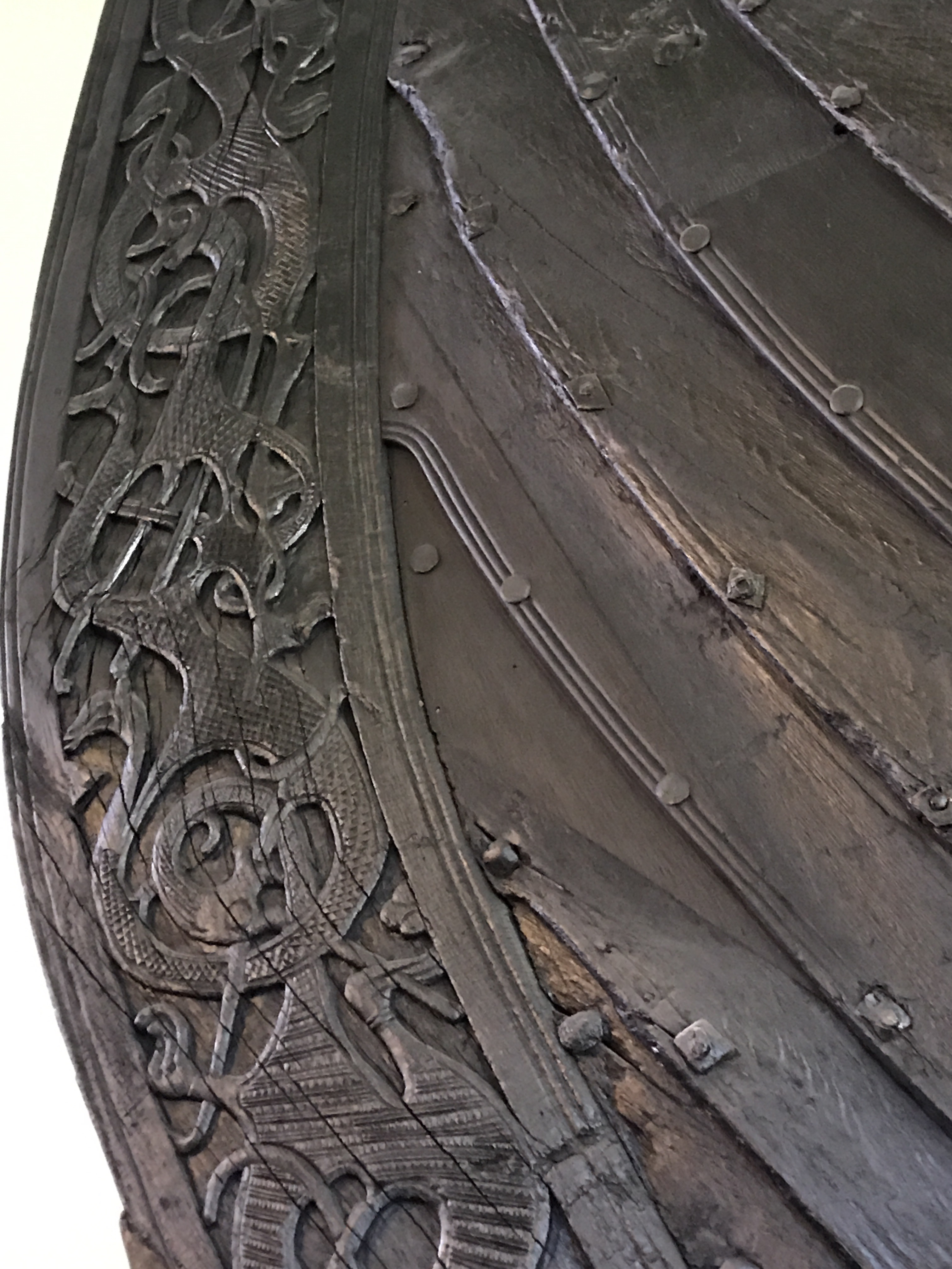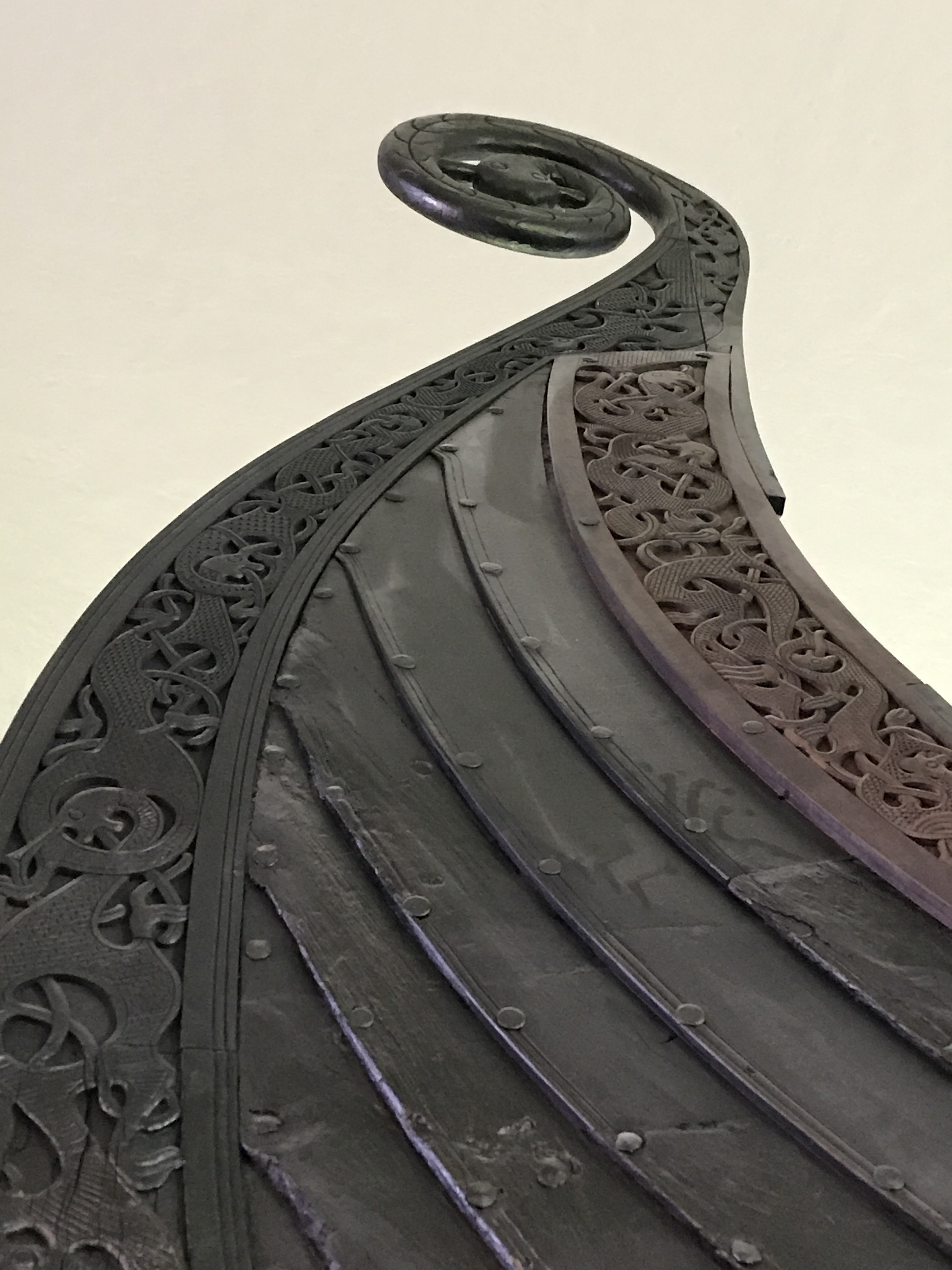 Some elements, like the serpent above, were reconstructed from fragments. Mostly, though, preservation was excellent, because the ships were buried in moist ground with high clay content, and covered with turf for centuries.