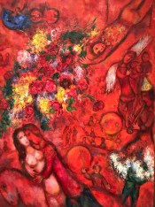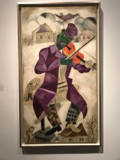 Violinists were always prominent in Chagall’s work. “Green Violinist” was from 1923-1924. It’s a fiddler on the roof–literally. This image was used in one of seven murals in the Moscow State Jewish Theater in 1920.