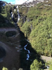 But I don’t envision driving on icy mountain hairpin curves. They were challenging enough with dry roads in June. That’s a typical one above, just below and to the left of the waterfall.
