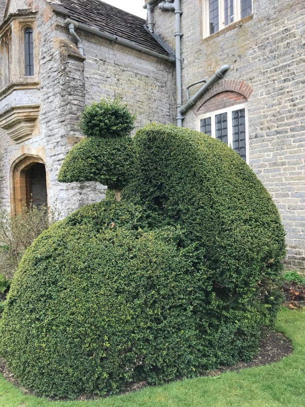 He kept peacocks which used to scratch at the door for handouts at teatime. Now there’s an enormous peacock topiary beside the front door.