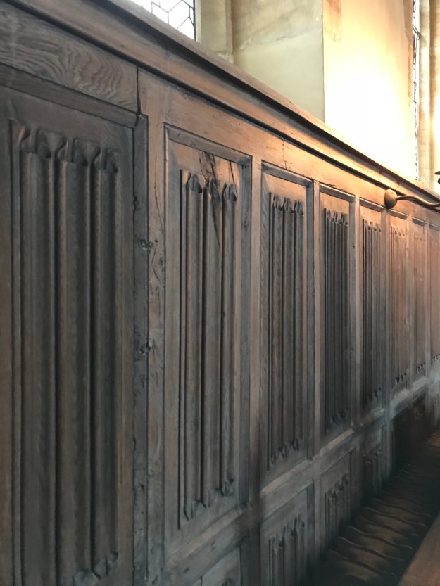 Being abandoned actually saved the house. In Victorian times, rich people busily “improved” medieval manor houses, much the way people today install new Sheetrock walls to cover antique stone or paneling. That’s rare and valuable “linen fold” carved oak medieval paneling above, original to the house.