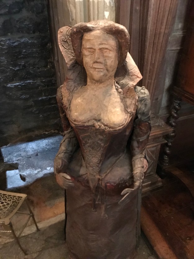 A pair of mysterious old leather mannikins, about 3 feet tall, stand beside the fireplace in the Great Parlor.