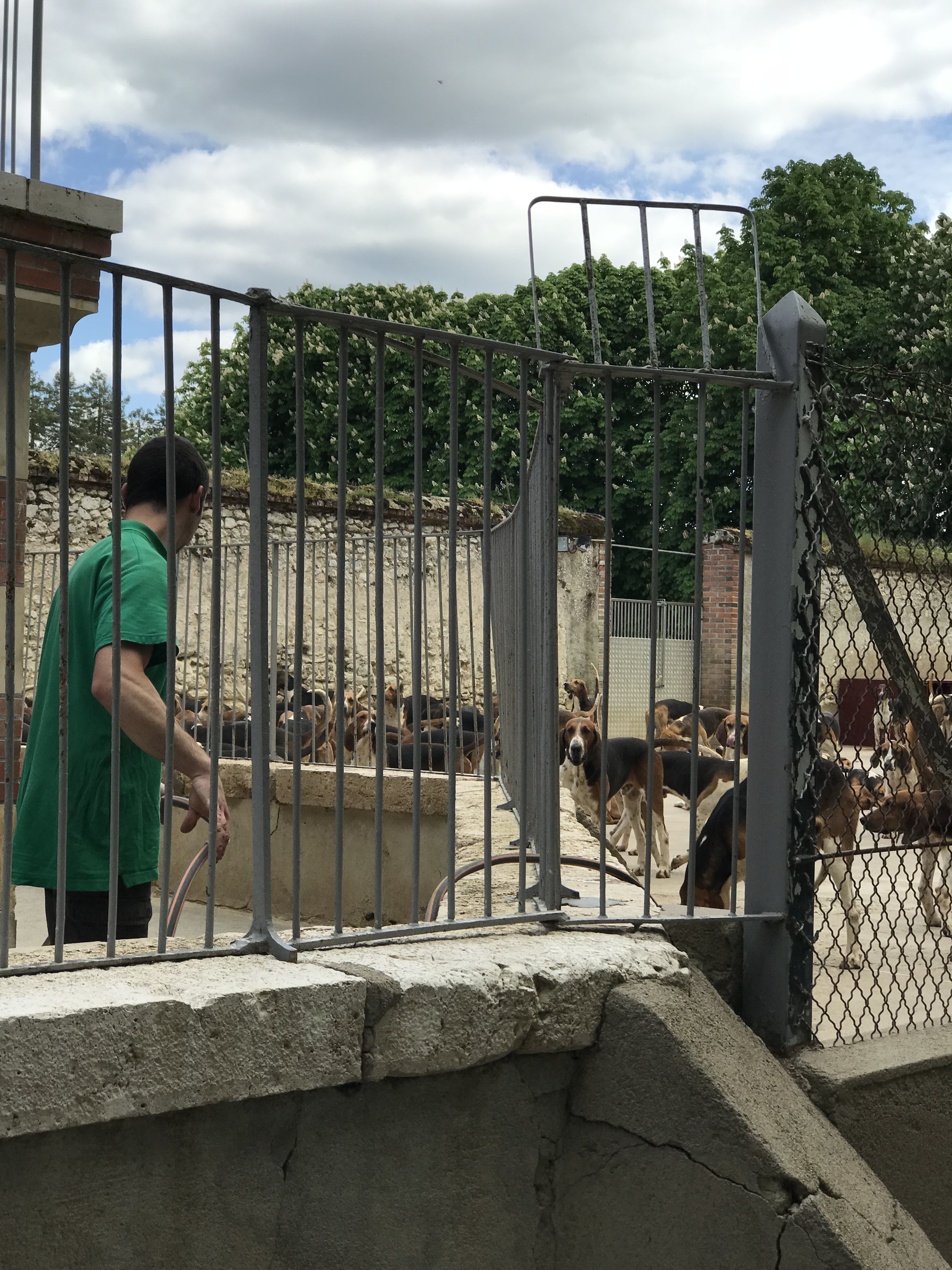 The Marquis maintains between 70 and 100 specially bred hounds. At five in the afternoon on most days, they gather for La Soupe des Chiens: a buffet of raw meat served on the spanking-clean kennel floor.