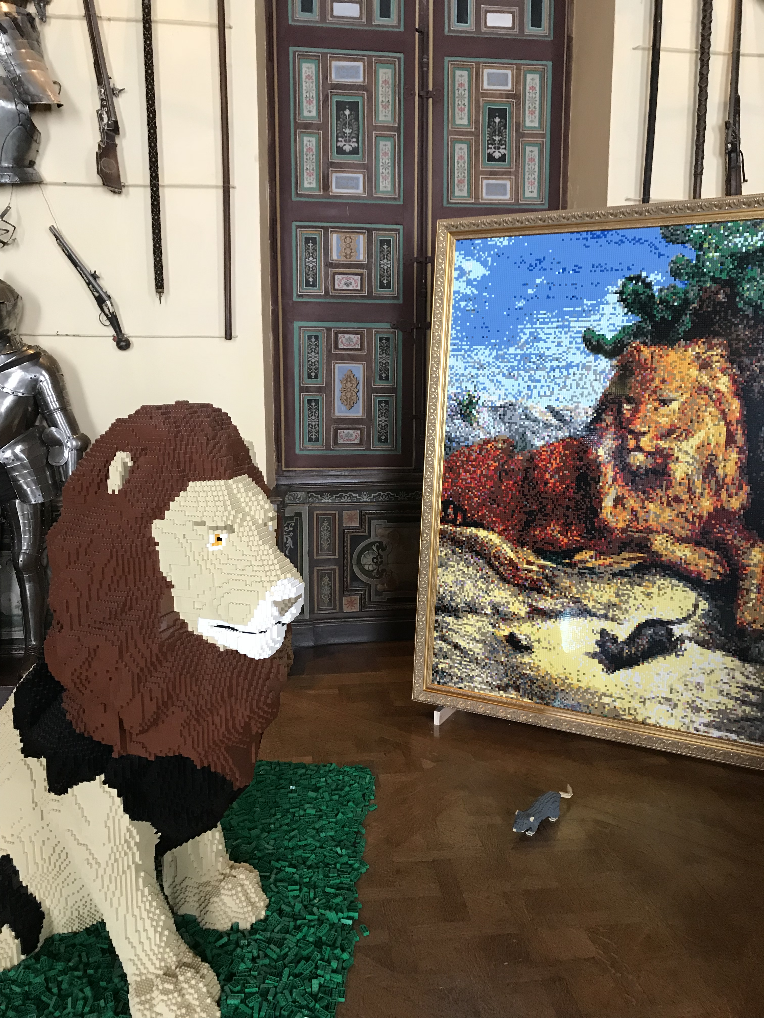 When I visited, each room had a Lego display illustrating one of the tables of Jean de la Fontaine, after the illustrations by Gustave Dore. Here’s “The Lion and the Rat.”