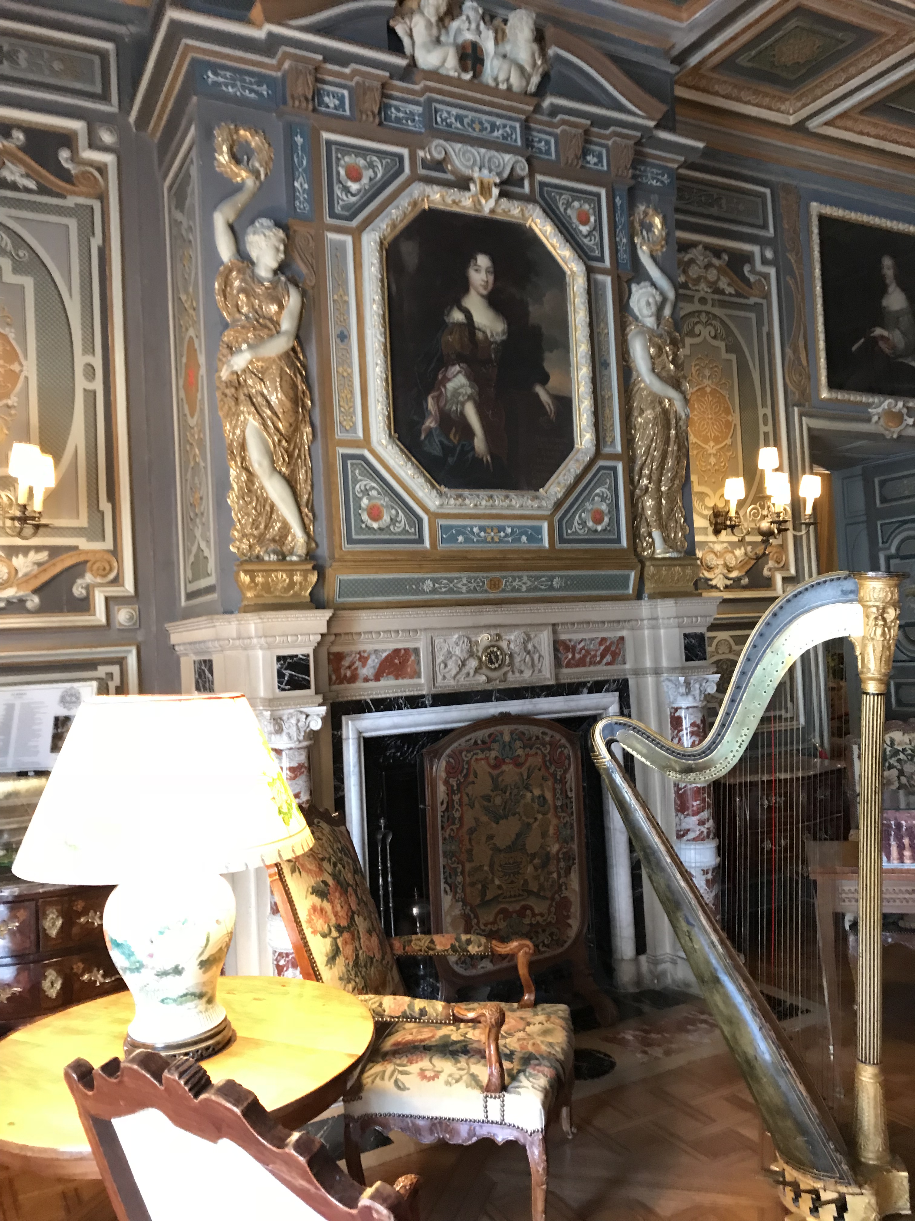 The Grand Salon is grand indeed. The lovely lady above the fireplace is an early Comtesse who married into the family. She was painted by Mignard, whose day job was to be Queen Anne of Austria’s personal artist.