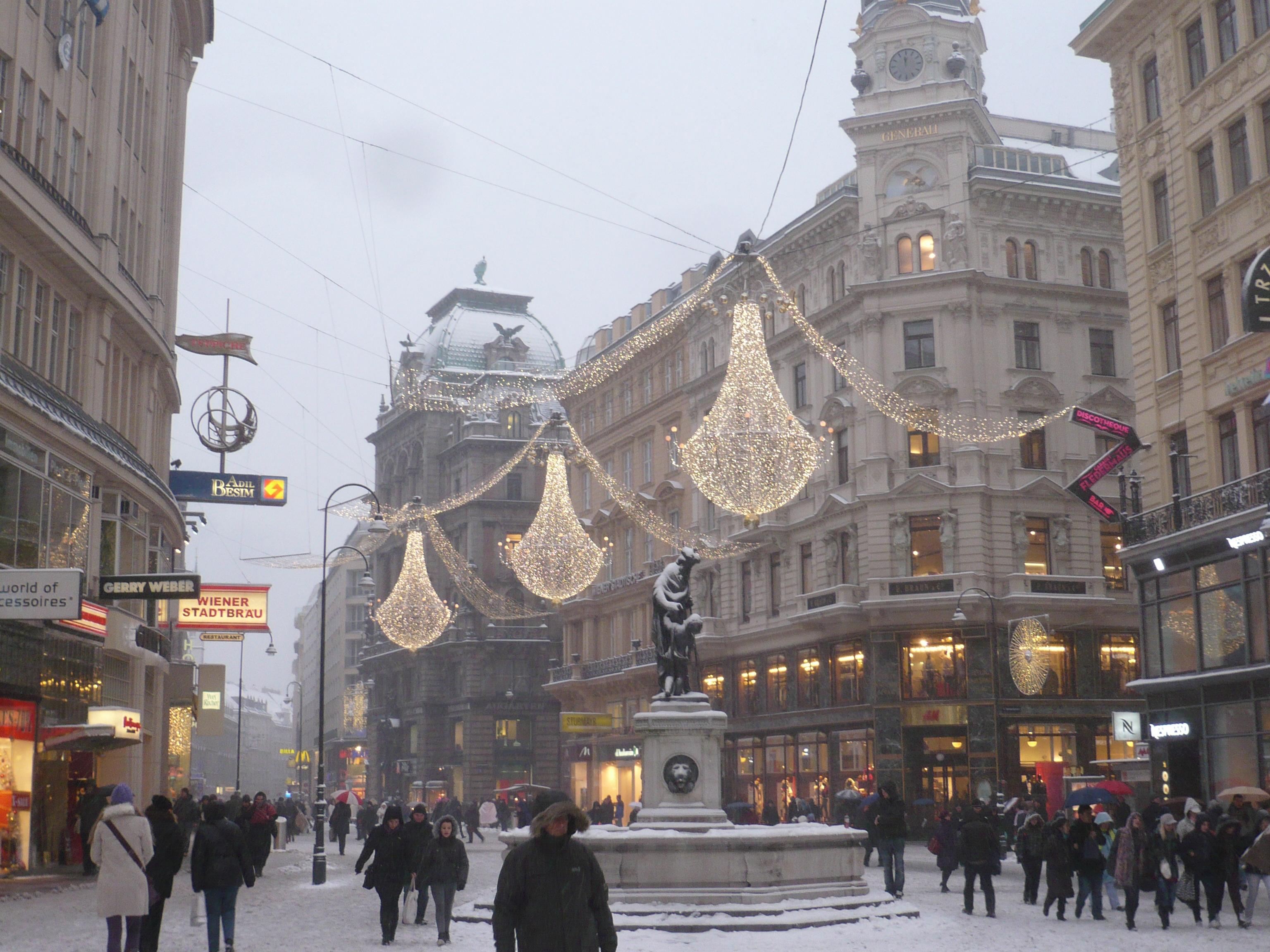 Vienna has some of the most beautiful markets, each with its own unique flavor. The one at the Rathaus–the City Hall–is the largest and has the most festive lights. For weeks before Christmas, it’s packed day and night with happy people strolling, eating and drinking.