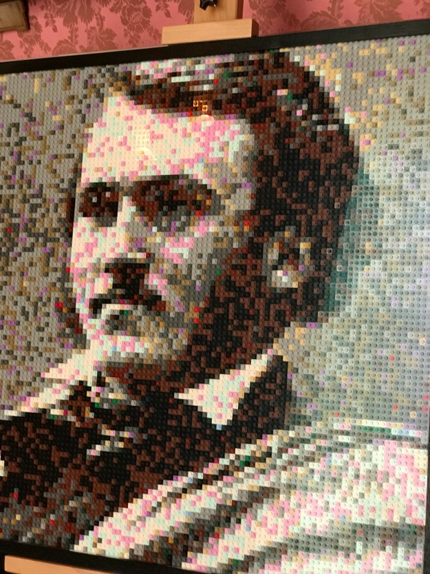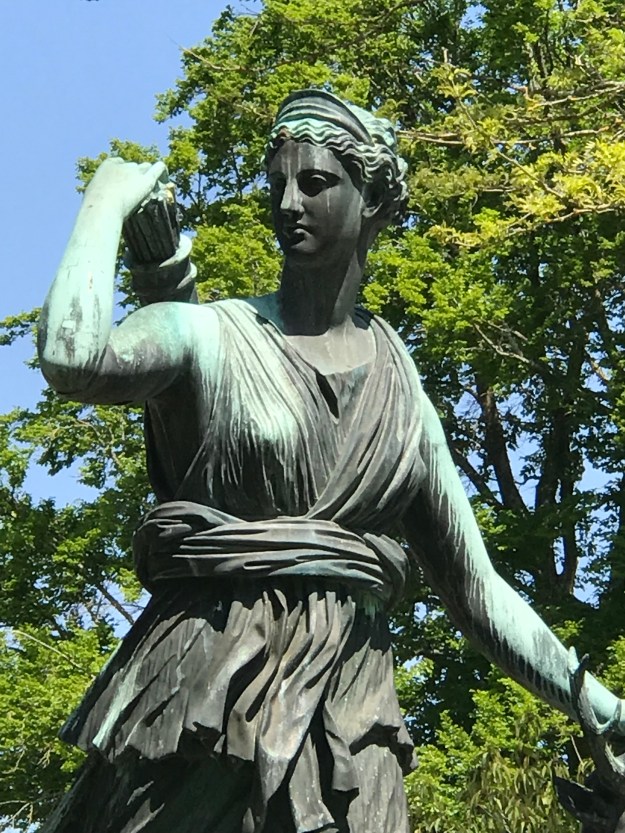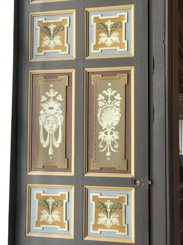 I admit I took a step backward when I walked into the entry hall. Figures from the Jane Austen era hovering on the spiral stairway! Elizabeth Bennet, is that you?