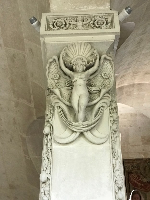 The older parts of the chateau have impressive carvings, like this armored Archangel Michael with his sword and scale of justice, all geared up for Judgment Day.