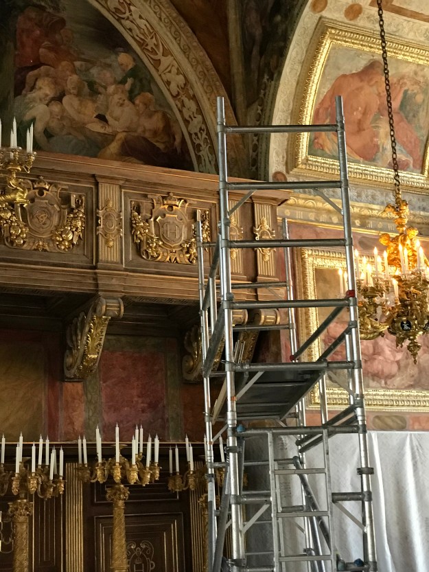 The same tower stairway leads to the attics. Surprise! Wealthy aristocrats had tons of extra stuff to store, like some of us. But they had huge elegant attics. Those of us who love dusty old things are lucky that Marie Kondo didn’t come along with “The Life-Changing Magic of Tidying Up” until 2011.