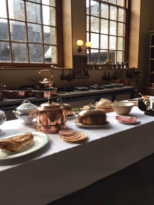 I might even settle for being a lowly scullery maid if I could work in the prettiest kitchen I ever saw. It must have stayed fairly cool, positioned right above the flowing river. (OK, I do realize the working kitchen would not be full of fresh flower arrangements. But still).