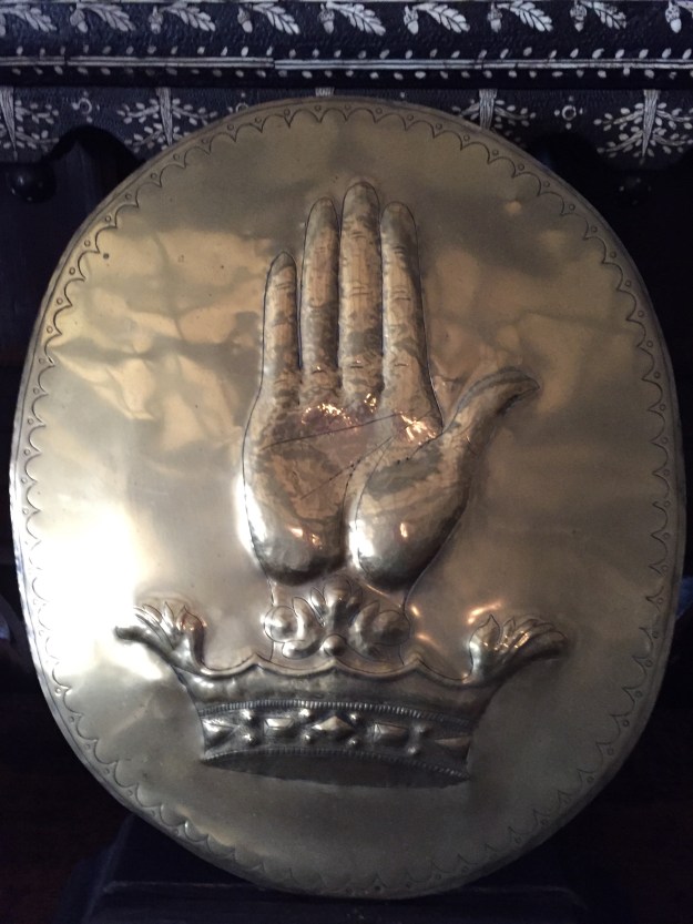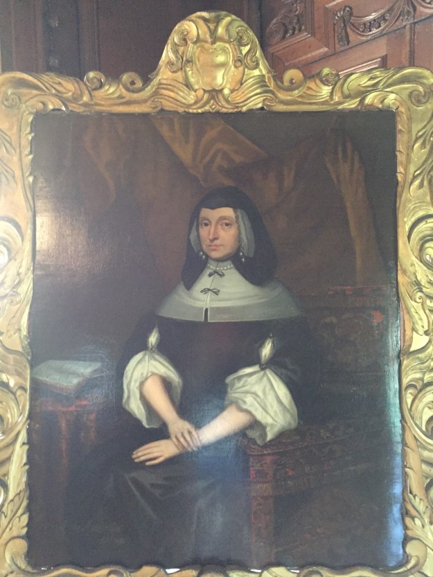 A hall chair can be steeped in history. This chair, at Nunnington Hall in Yorkshire, has the emblems of one of the many owners over the years. I’m not sure whose emblems they are. But the oldest part of the existing mansion was built by William Parr, the brother of Catherine Parr, the only one of Henry VIII’s six wives to outlive him. William lost his title and Nunnington in 1553 when he made the big mistake of plumping for Lady Jane Grey as Queen. After her nine days on the throne, he was convicted of treason and sentenced to death. But a pardon allowed him to keep his head. Eventually, Elizabeth I restored his title, but not his mansion or his hall chairs.