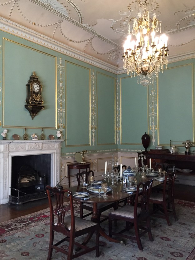 If you were lucky enough to be invited into a drawing room and dared to sit down, you might feel comfy on an upholstered chair, like one of these at Attingham. But if you were kept in the entry hall, you might have a long wait perched on a hard chair. I suspect that often a servant would be delegated to watch you as well, to be sure you didn’t make off with a silver candlestick.