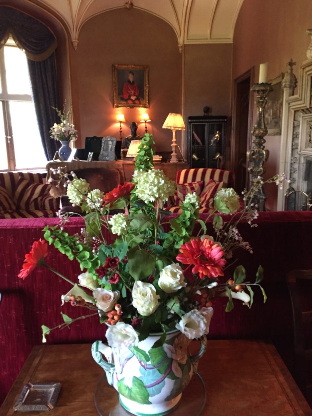 It seemed all right to take a picture of one of the Queen’s very elegant hall chairs just inside. But I didn’t quite dare to sit down.