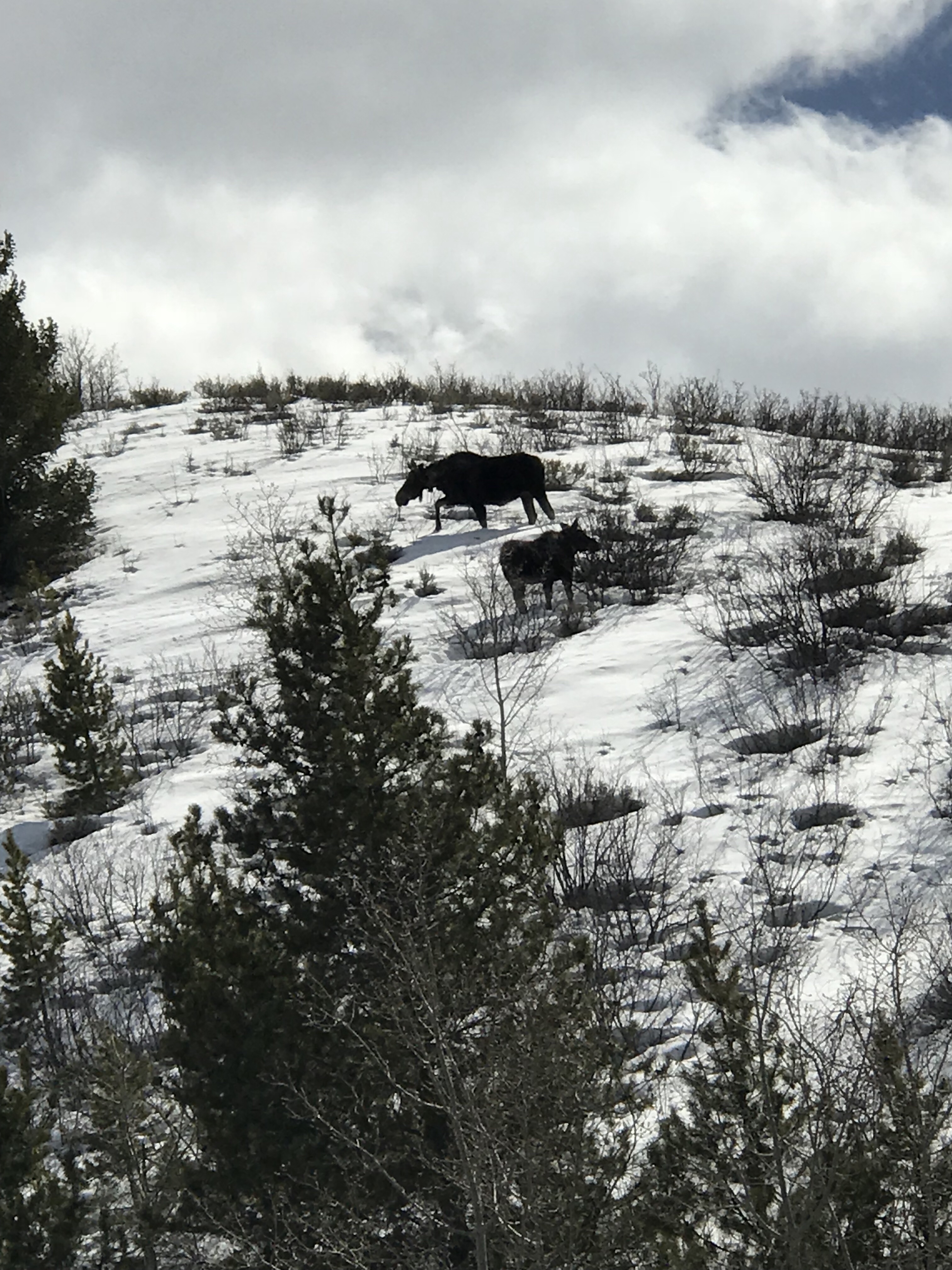 Where I live in the mountains of Colorado, it’s still winter. The moose are finding tender branches to chomp, though.