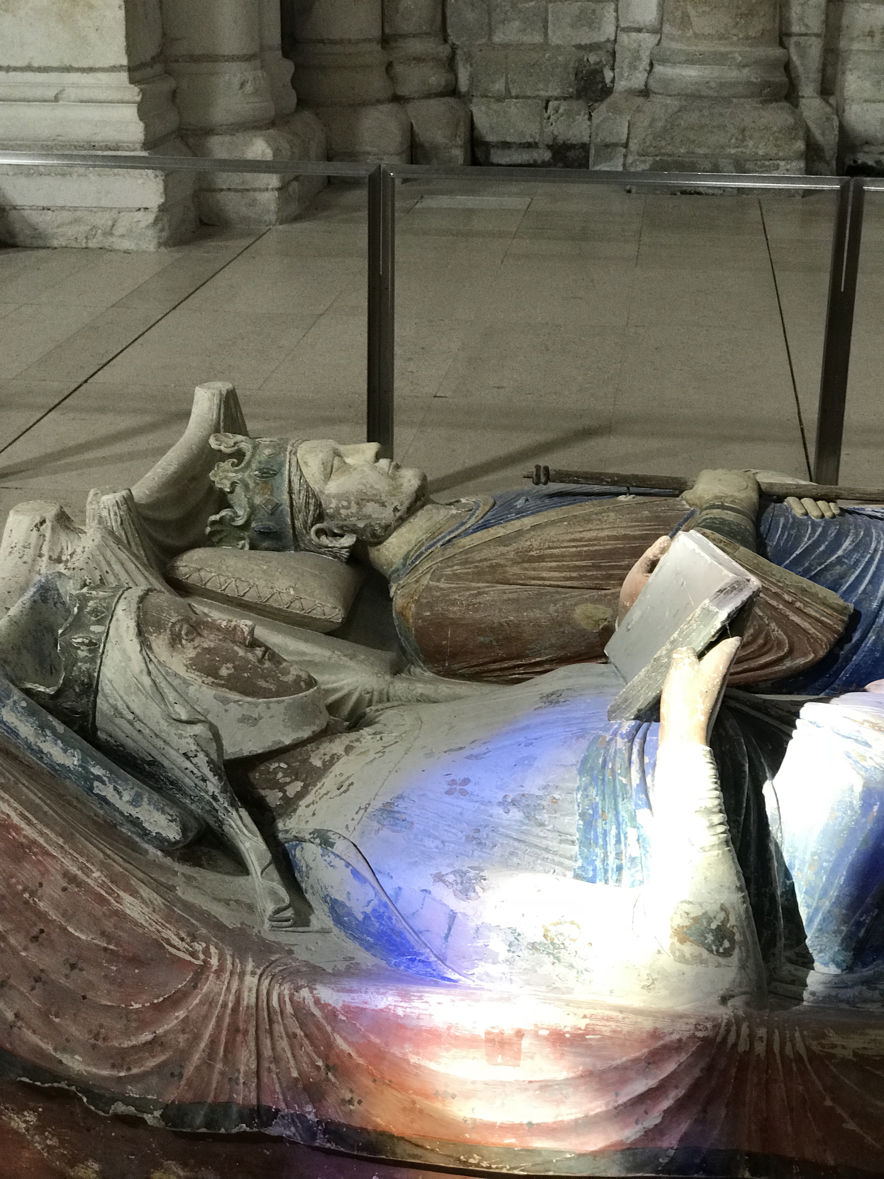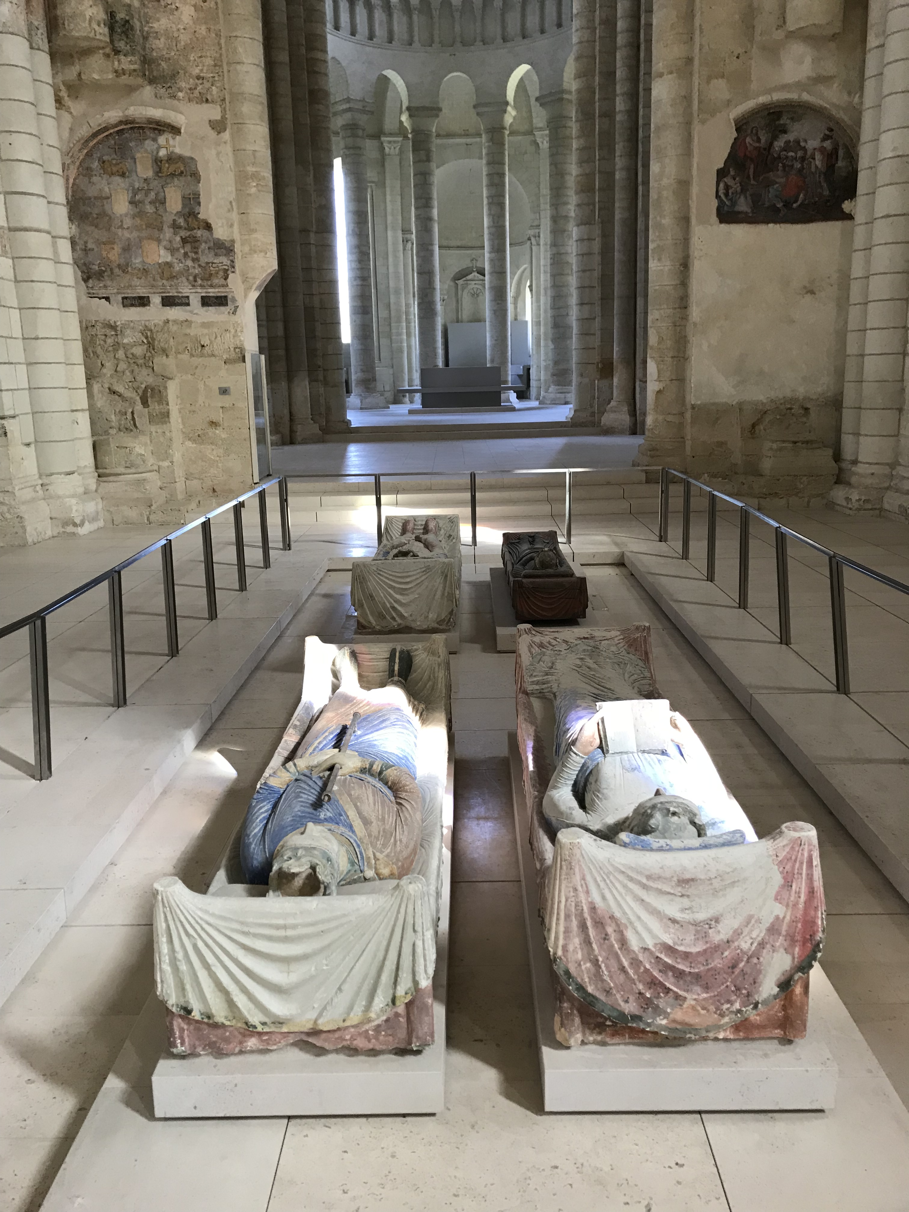 It’s true that Eleanor of Aquitaine spent her last days at Fontevraud-l’Abbaye, when it was a very pleasant place, and died there in 1204. Her effigy lies with those of her husband, King Henry II of England, her son, Richard the Lionheart, and Isabella of Angouleme, wife of King John of England. But the monastery was dismantled during the Revolution, and these may not be the actual resting places. Anyway, the space is cold, empty, and unconsecrated.