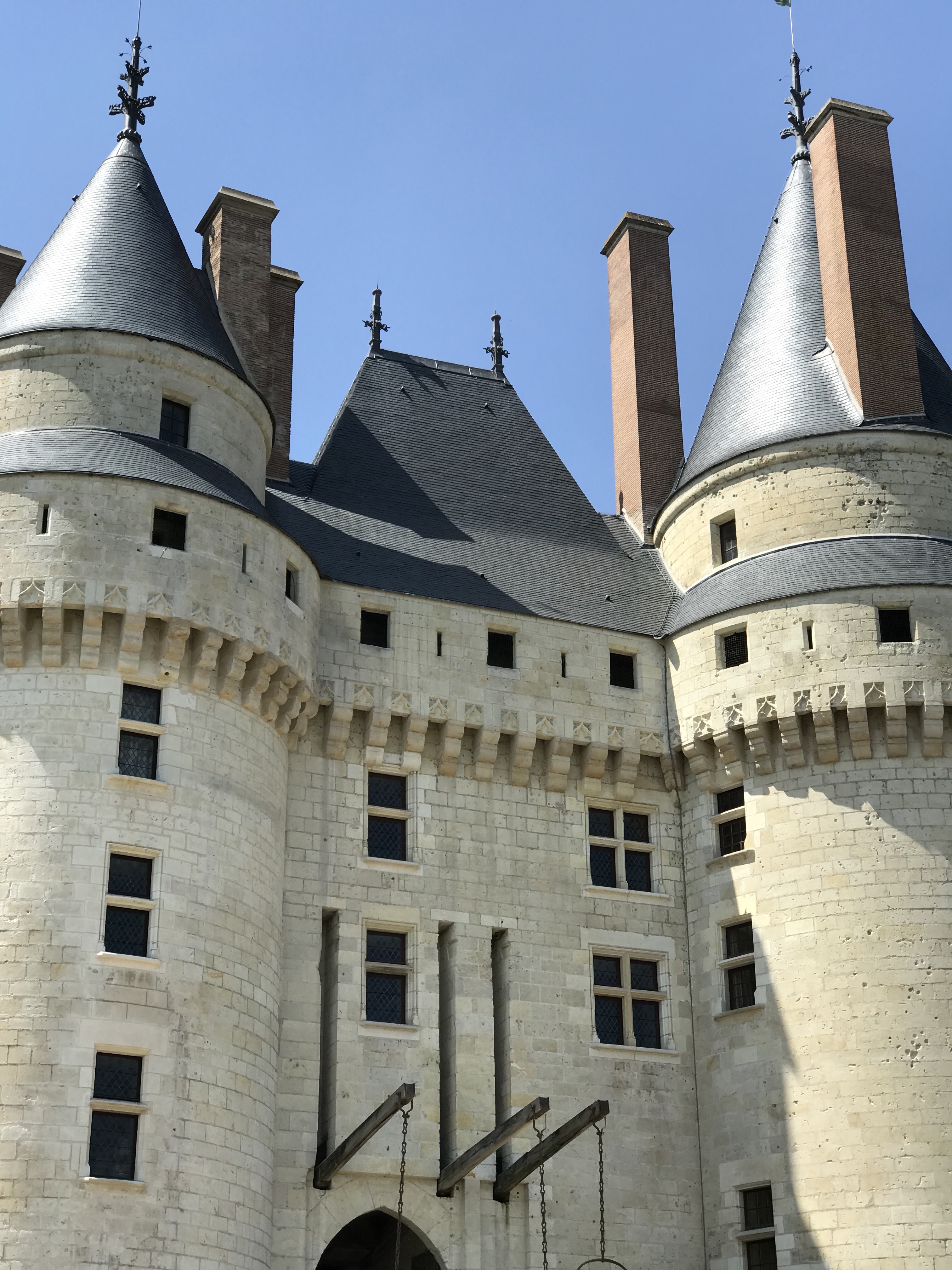 Starting in 1495, Louis XI built the castle we see today. By this time, everybody who wanted to do battle had gunpowder and long-range cannons, so high walls with places for archers to hide were of no use against a determined enemy. There were no such enemies, but still, a new castle had to look a certain way. No self-respecting chateau would lack an intimidating drawbridge.