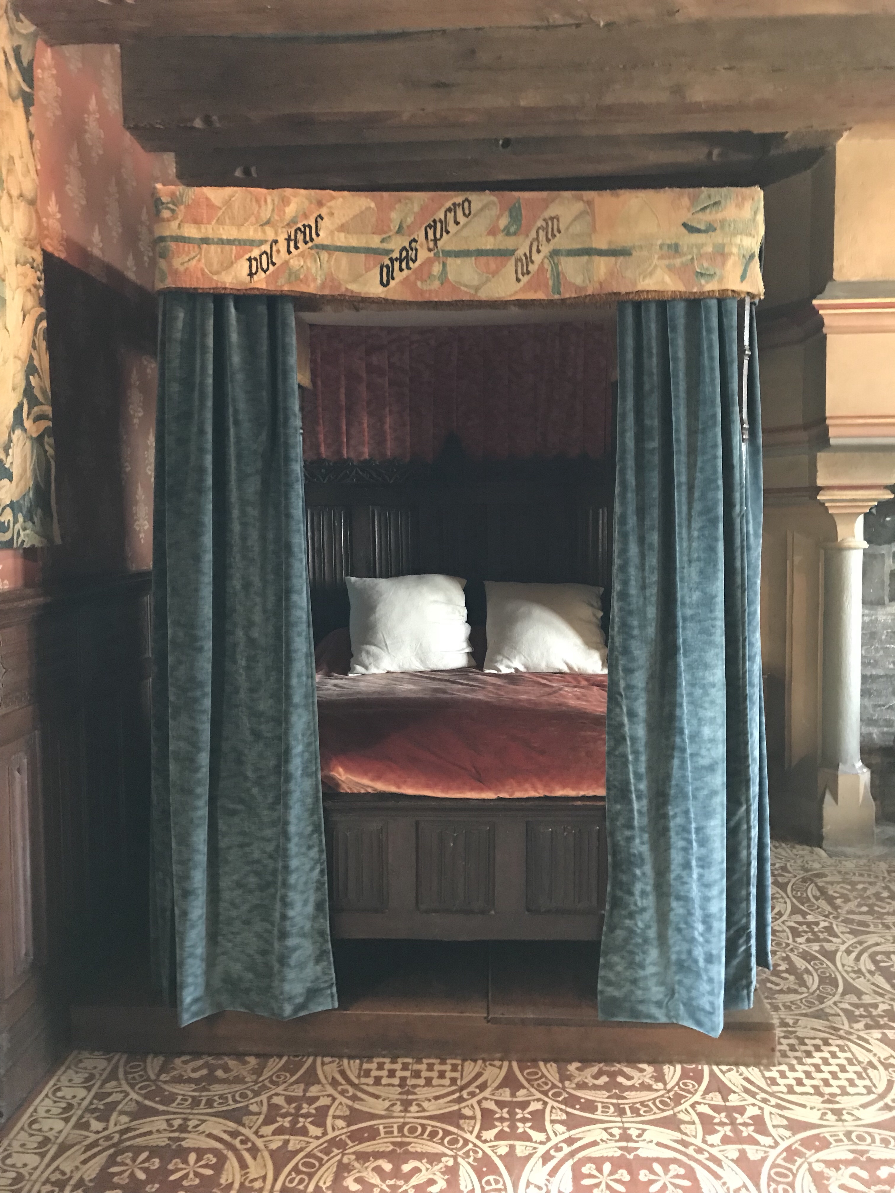 Medieval castles were drafty; the rich had elevated beds draped with cozy textiles. They also had big bolster-like pillows on which they slept nearly sitting up. There was a belief that lying down all night might cause death. (Presumably the servants and poor folks were too exhausted at the end of the day to have this worry).
