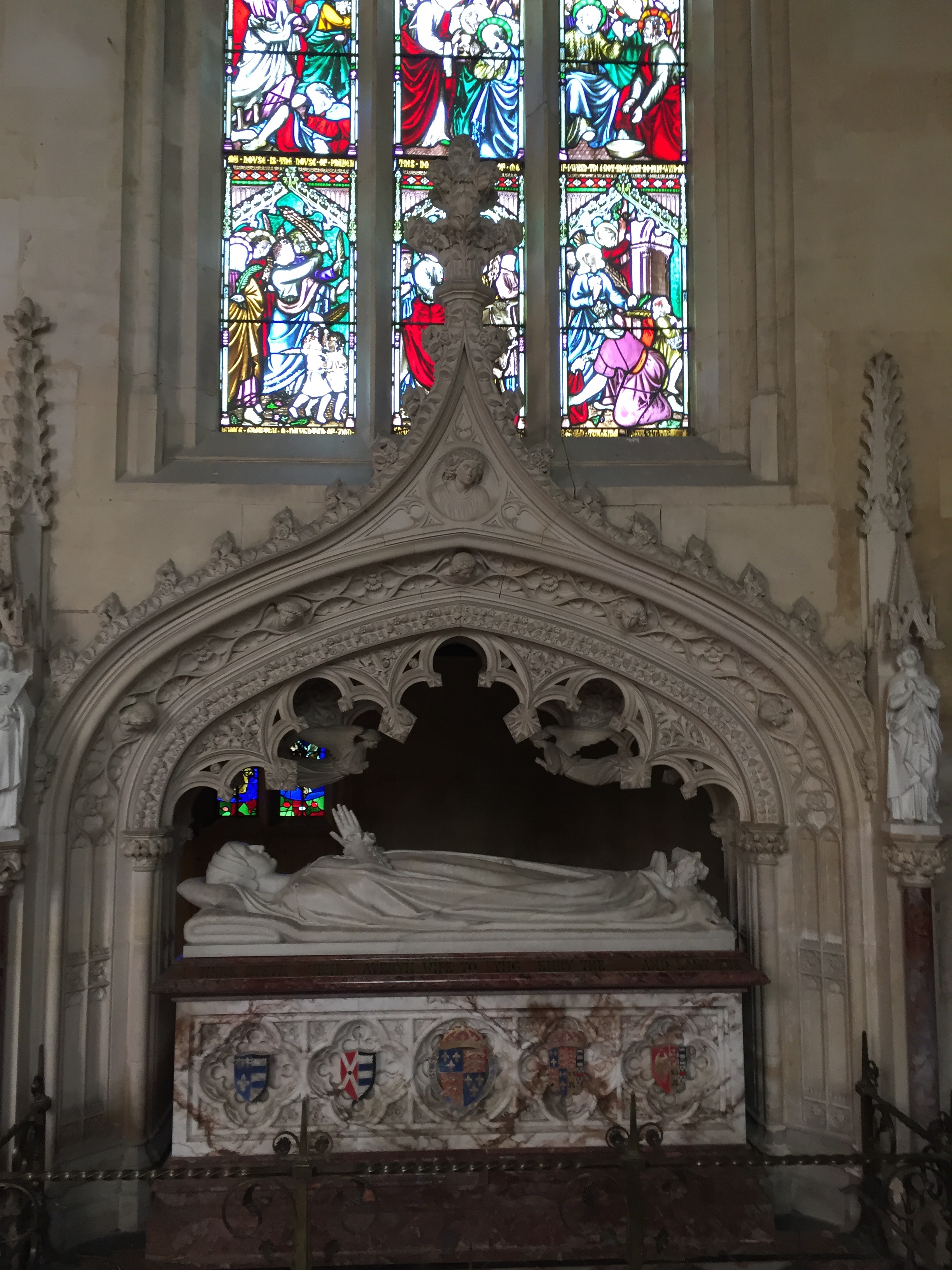 …and in St. Mary’s Church on the castle grounds, angels hovered over the Victorian tomb of Queen Catherine Parr, the last wife of King Henry VIII. (Her coffin was lost for a few centuries following the English Civil War, when the castle was “slighted” by Cromwell’s troops).