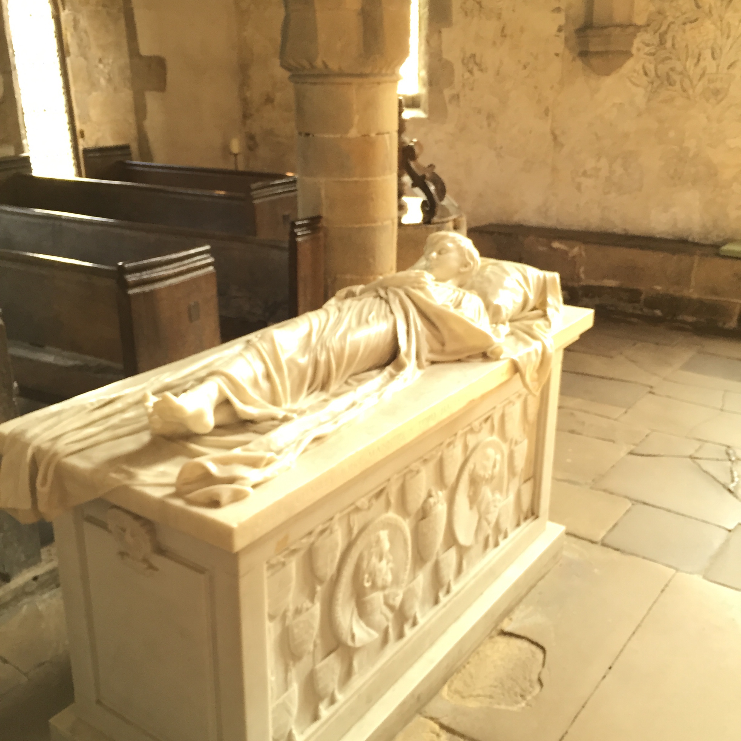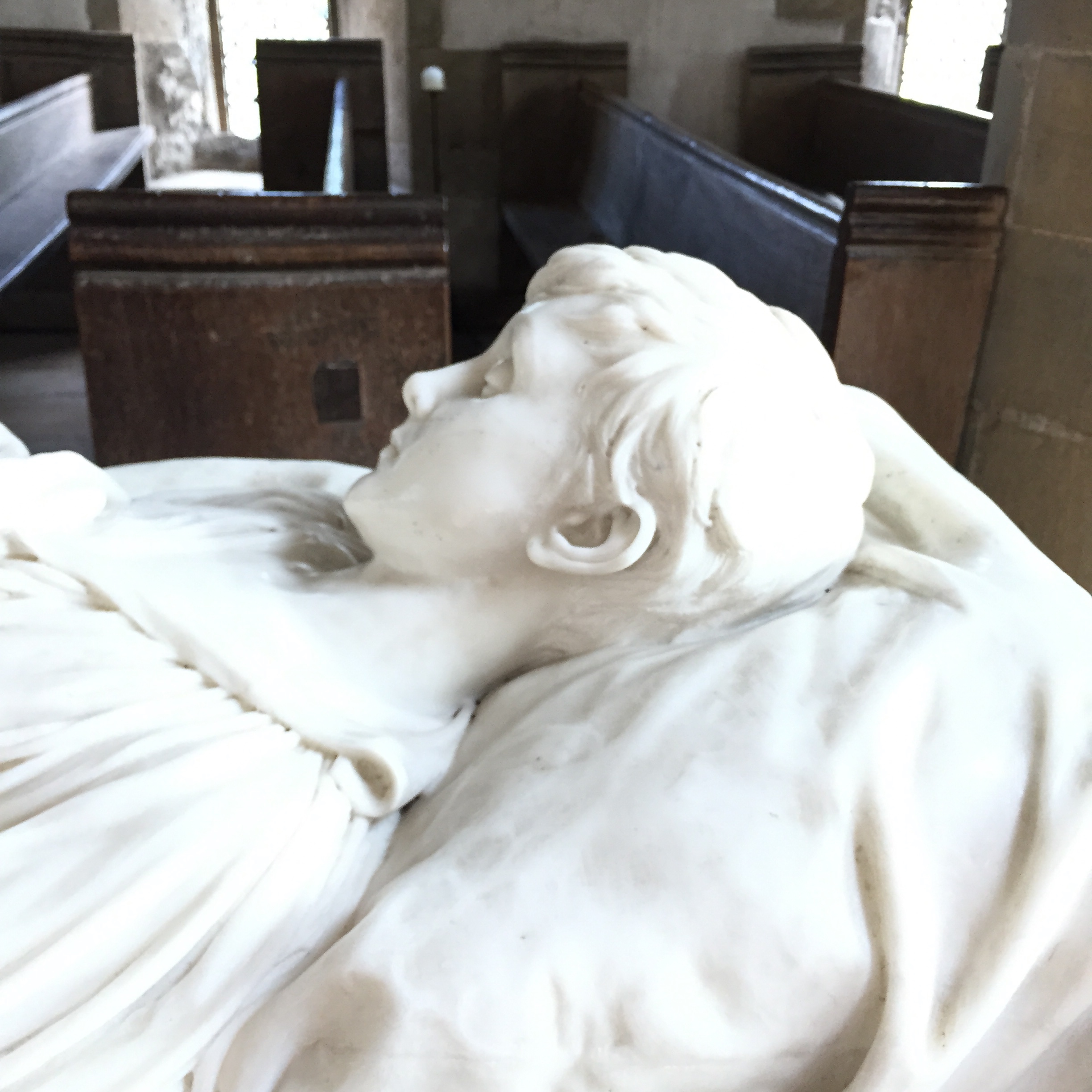Haddon Hall is a well-preserved medieval house in Derbyshire. Its St. Nicholas chapel dates from the 1400s or earlier. The chapel contains one of the most beautiful and touching memorials I’ve ever seen, a marble effigy of young Lord Haddon, who died in 1894 at the age of 9.