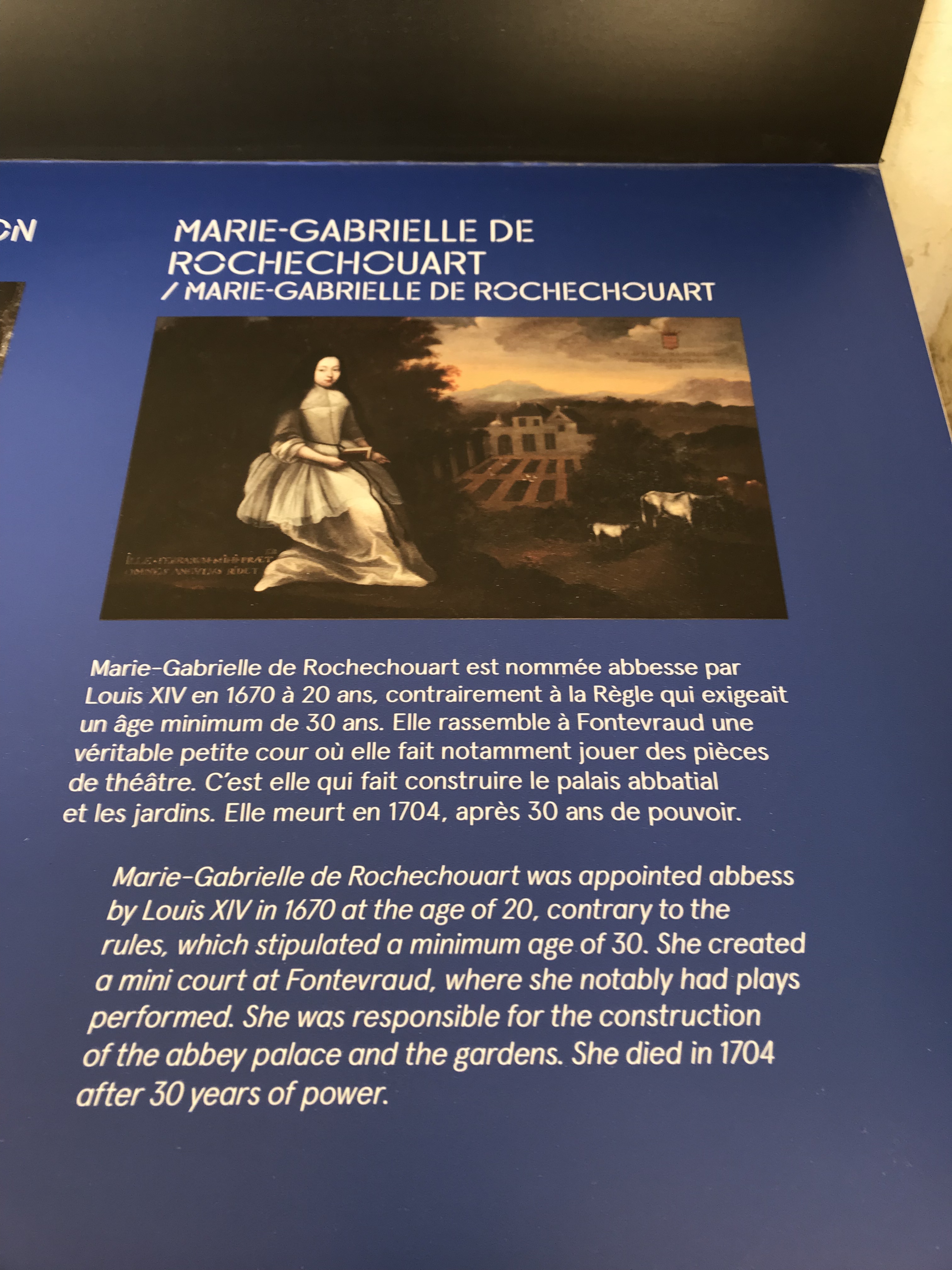 There were actually four different orders of religious people at Fontevraud, one of them made up of male monks under the authority of the nuns. Fontevraud was very unusual in that respect. It was set up as a kind of utopian community run by women. I’m all for that! But there’s very little information posted about the history of the Abbey.