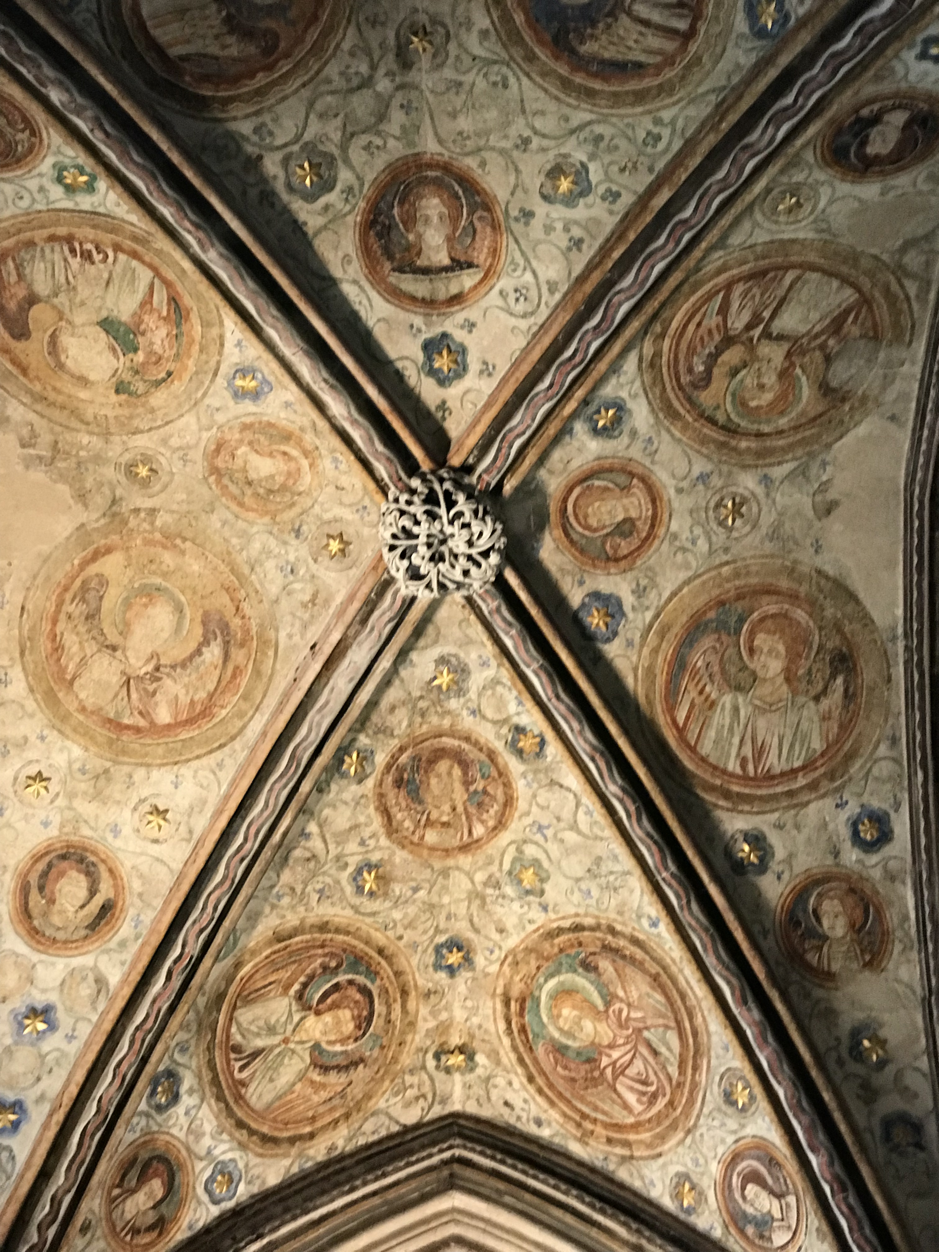 Even more, I’d like to think Jane once stood and gazed up at the exquisite ceiling of the Guardian Angels Chapel, dating from around 1240, by Master William, the King’s painter.