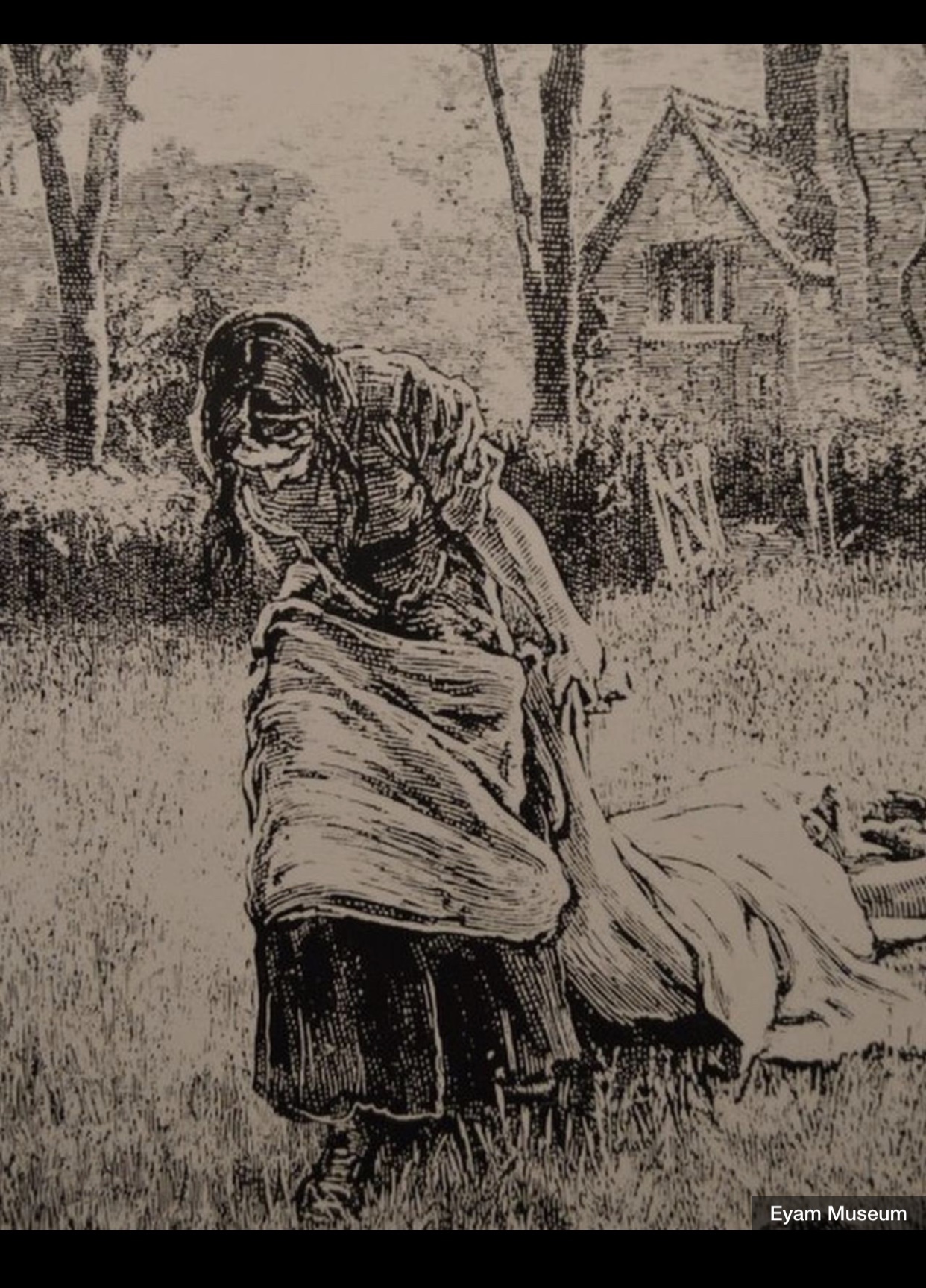 By August of 1666, villagers were dying painful, gruesome deaths at the rate of five or six a day. A woman named Elizabeth Hancock lost her husband and six children over a period of eight days. She had no option but to drag their bodies outside and bury them herself. (Later, another villager survived the illness and took over the job of burying victims).