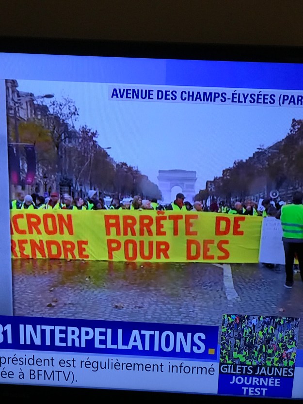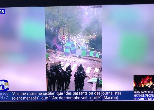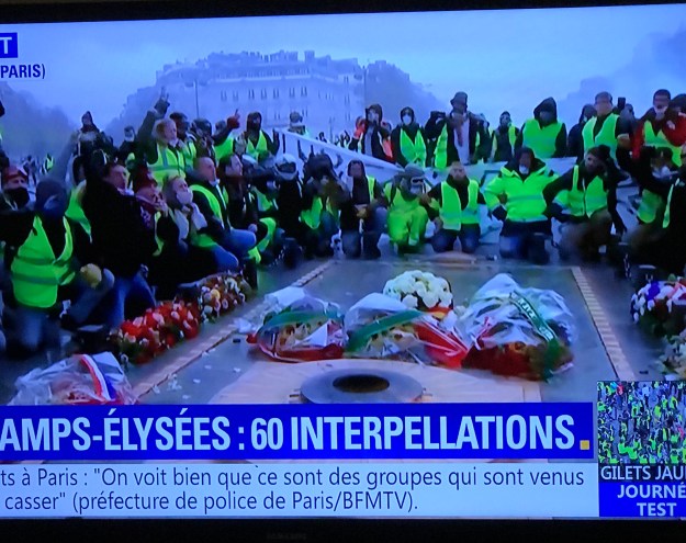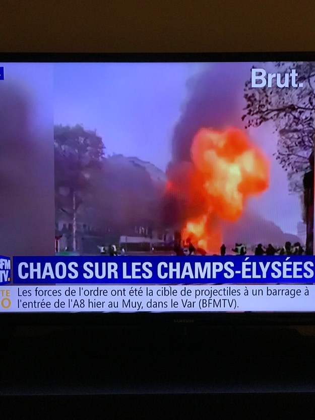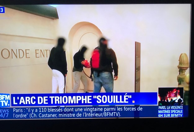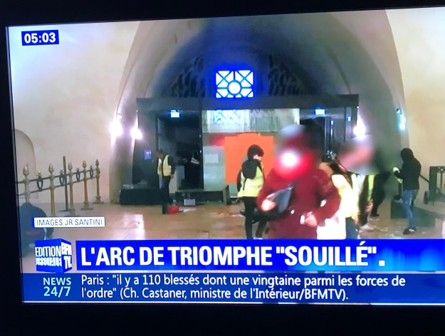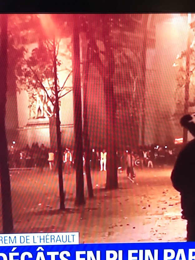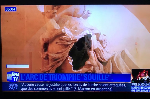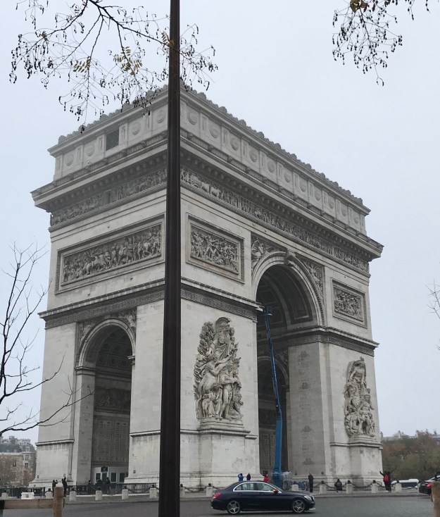 Early in the afternoon, we bought some groceries and decided to hole up in our apartment until we left Paris in the morning. We felt safe because police had completely evacuated the Place Charles de Gaulle, the huge traffic circle that surrounds the Arc de Triomphe. Police vans by the dozen were parked on a nearby street, and we were on a smaller street, in an apartment inside a courtyard with a locked door to the quiet little rue de l’Etoile outside.