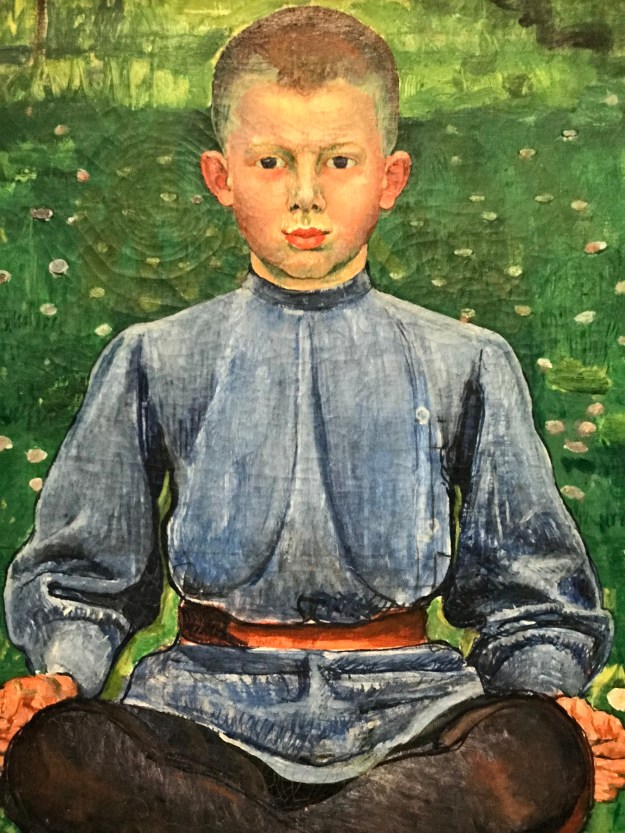 I love portraits of children. After a recent trip to Paris, I have a new favorite collection of them. The one above is newly-acquired by the Musée d’Orsay. (They had to do extensive restoration–the paint still has obvious cracks). It’s by the influential Swiss painter Ferdinand Hodler, 1853-1918. He carefully observed reality, but believed that the artist should go beyond appearance to reveal the underlying structure and essence of the subject. Young Werner Miller looks to me like a stern old man in a child’s body. Or maybe he’s a child clenching his fists in an effort to escape from an old man’s stiff pose?