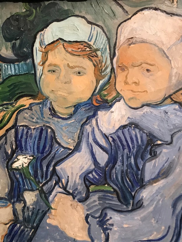 Vincent Van Gogh painted these two little girls in 1890. I could look at this deceptively simple painting for hours. The child on the left is a serene beauty; the one on the right is not so pretty. In fact, she looks like an old woman, resigned but already grumpy about her lot in life. But there they are, sisters or maybe friends heading into their lives together.