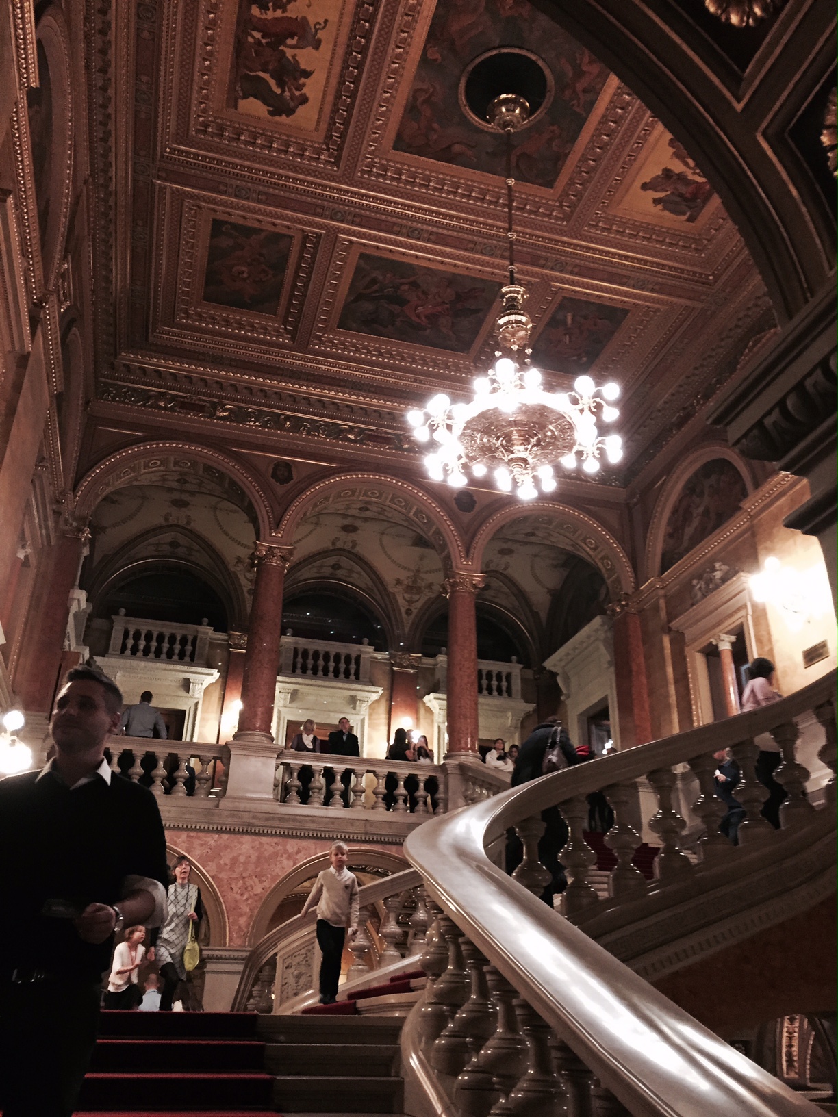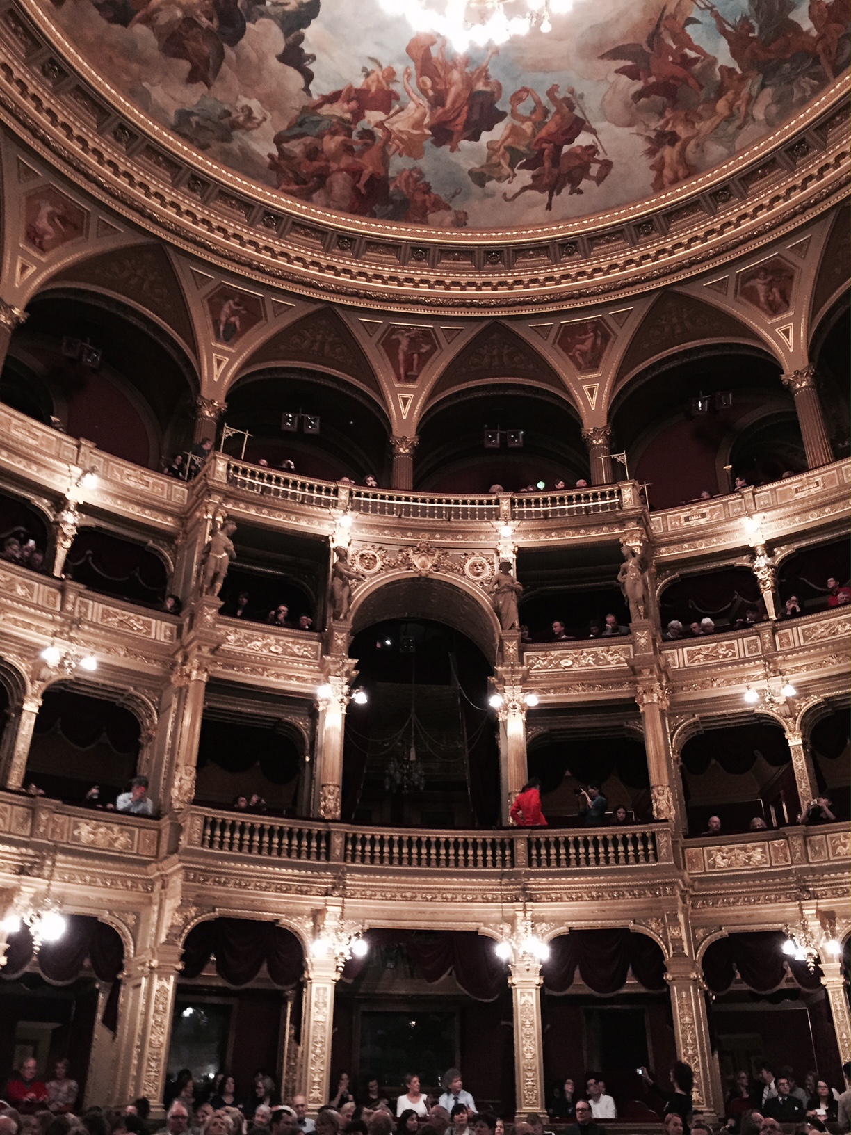 And at home, women enjoyed their new freedoms as much as when they were out and about. On the door of the women’s restroom, I found this charming portrait of a woman wearing pajamas–with pants! And lighting a cigarette from her bedtime candle! The world was changing, in Budapest as in other cities. The House of Art Nouveau is a delightful wander into the past, and a look at what the future would bring.