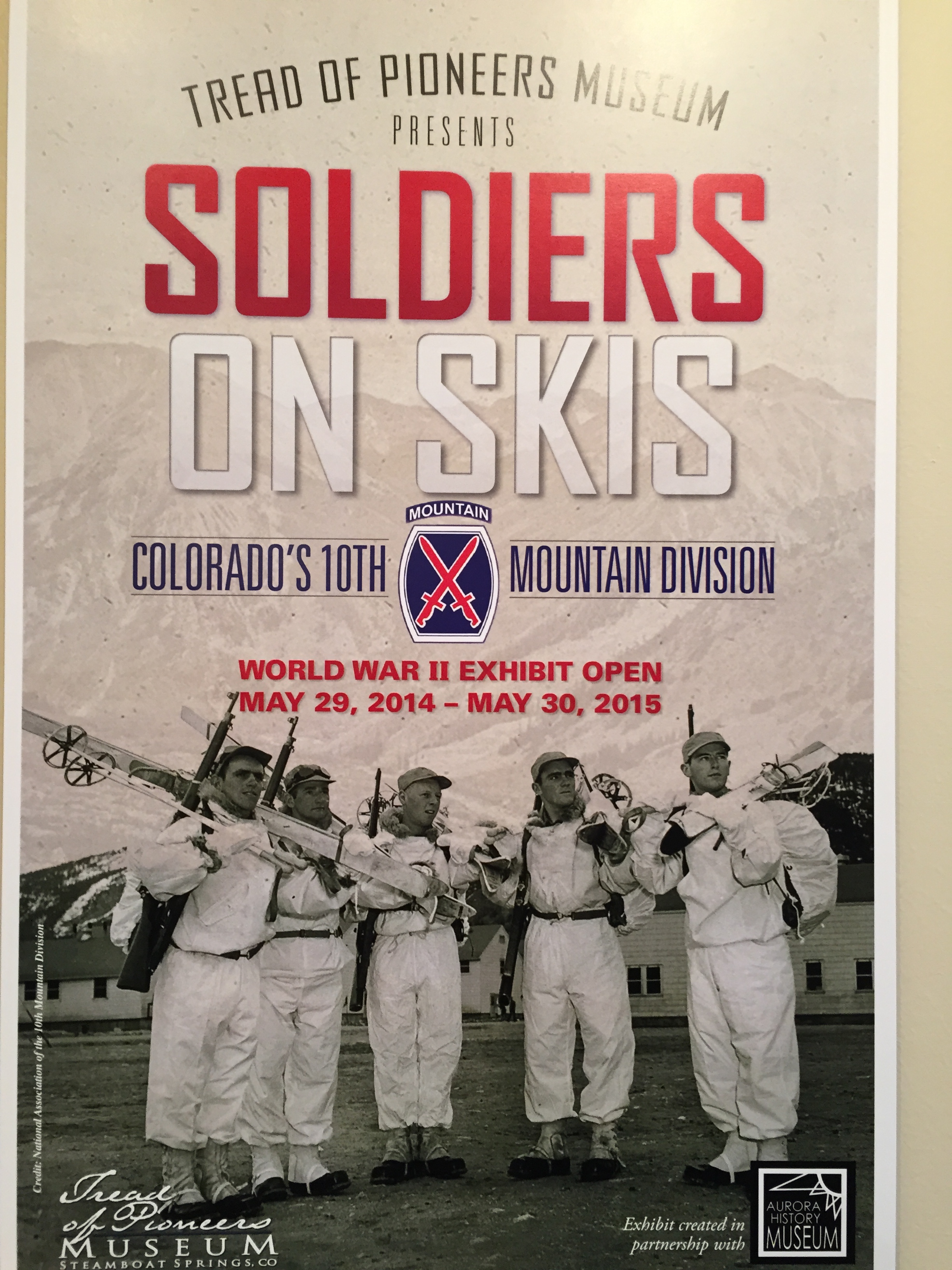 On this Veterans’ Day in the United States, I stopped by a local museum to see an exhibit honoring a special group of soldiers who served during World War II. The Tread of Pioneers Museum in Steamboat Springs, Colorado is hosting a exhibit called “Soldiers on Skis.” A number of locals served as soldiers on skis. They still hold reunions here.