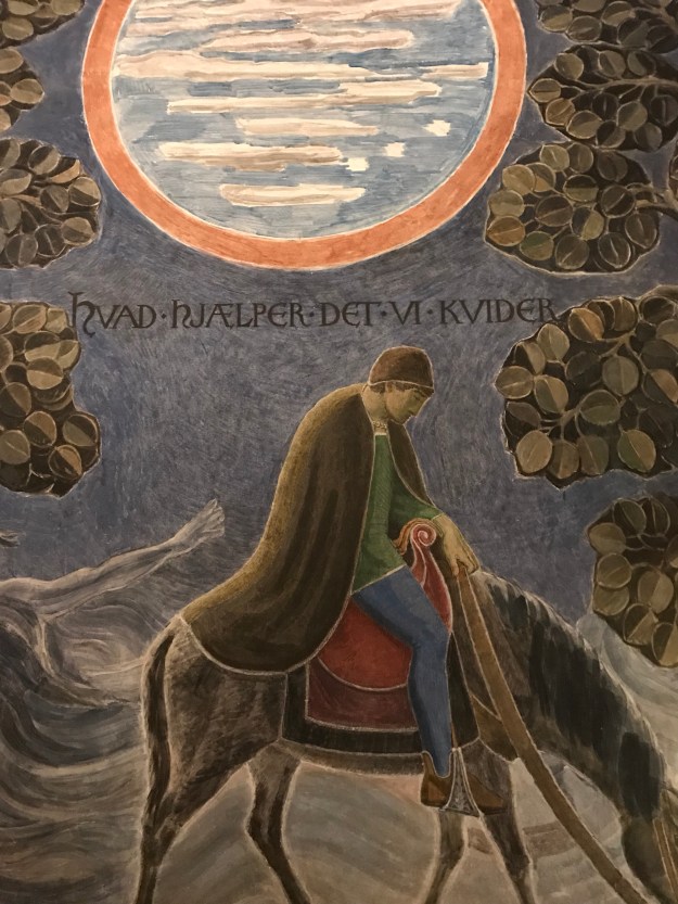 If I could read Danish, I’d know more about the military history of the castle’s families. Anyway, I think the armor on display looks impressive and I’m willing to believe it’s authentic. I do have to say, I’d be tripping on my own feet in the footgear, though.