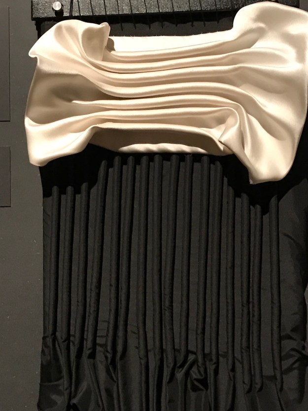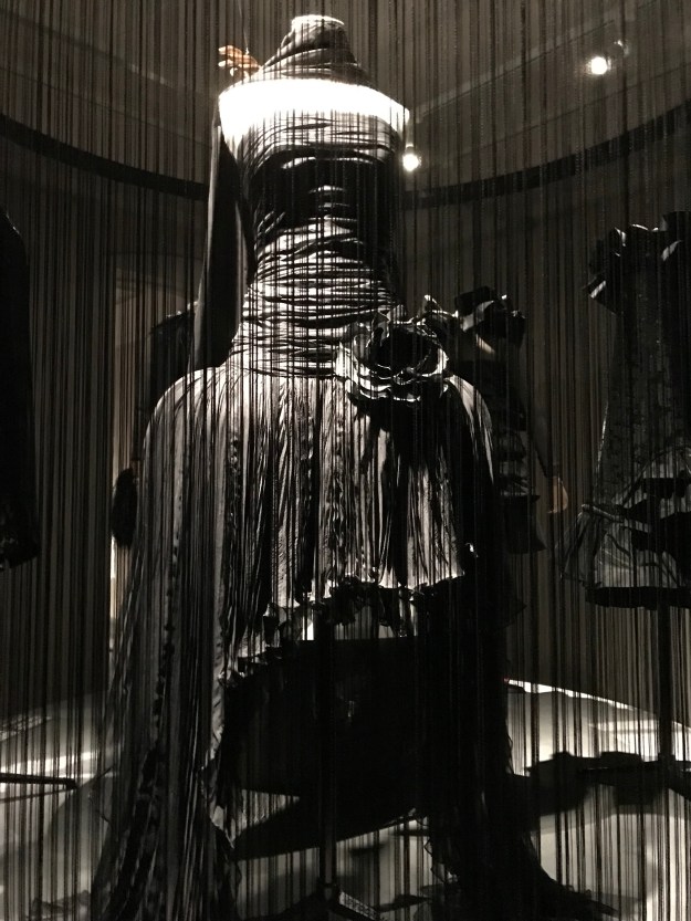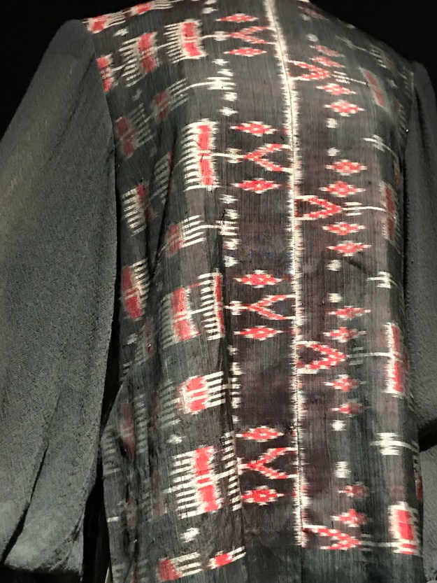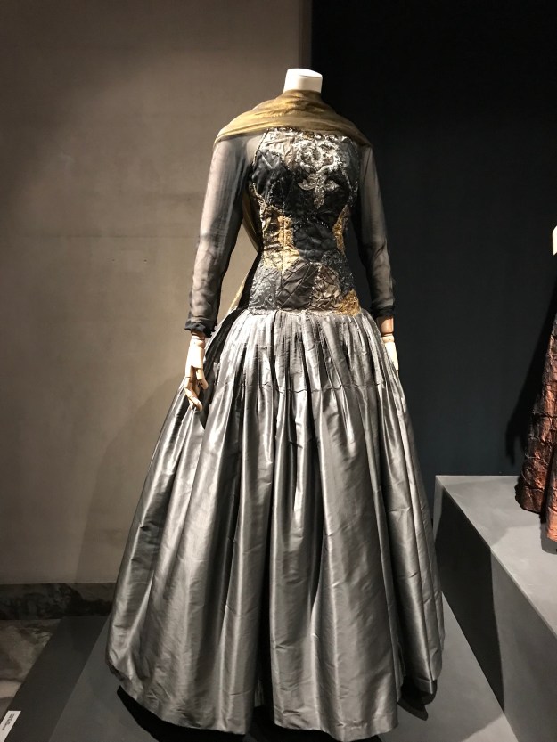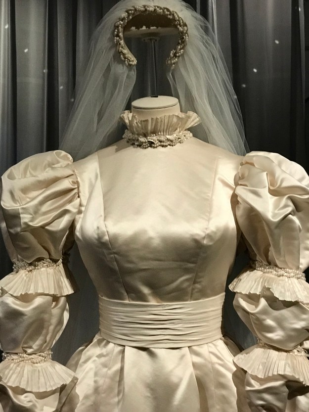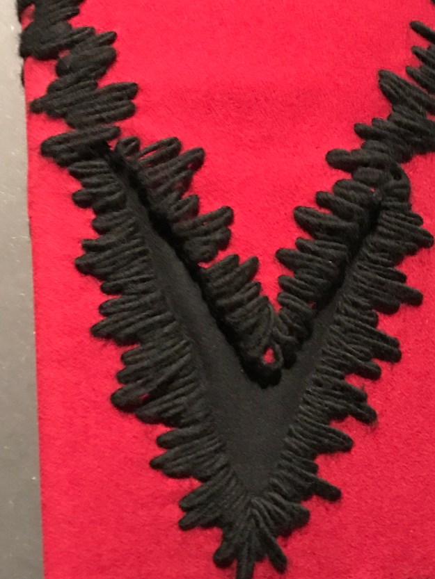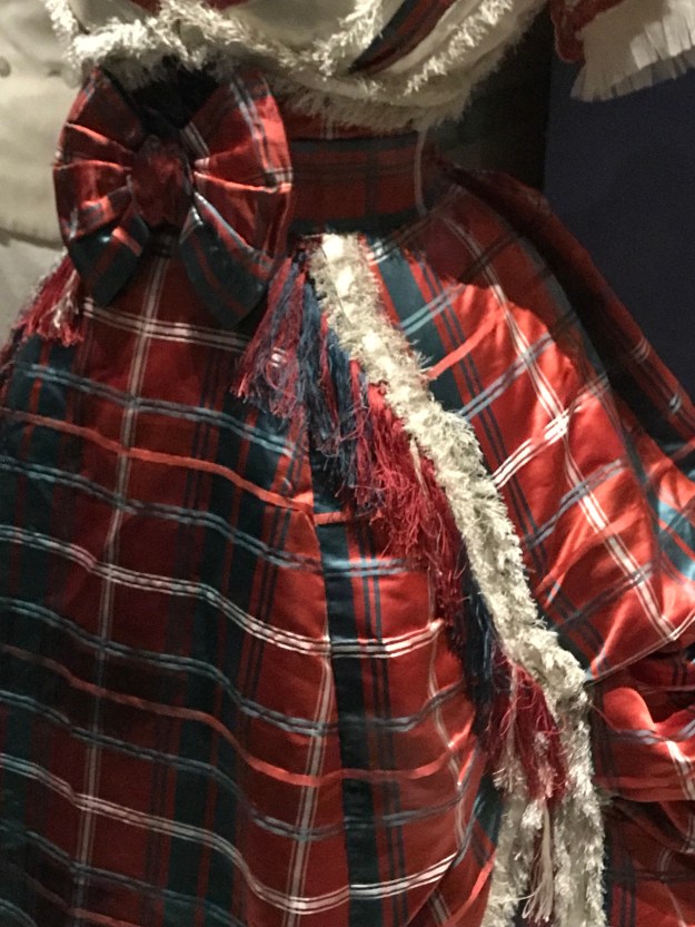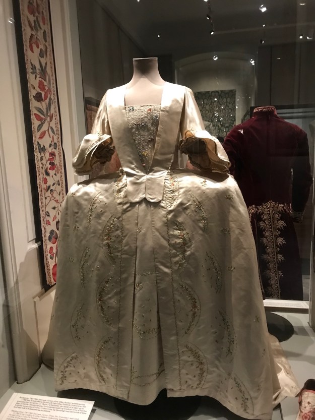 One family member somehow acquired a section of a gown being made for Marie Antoinette. Now the embroidered pieces look a little forlorn, grafted into a plain white gown. (The room has a rather gory display of a bloody guillotine, which I could do without).