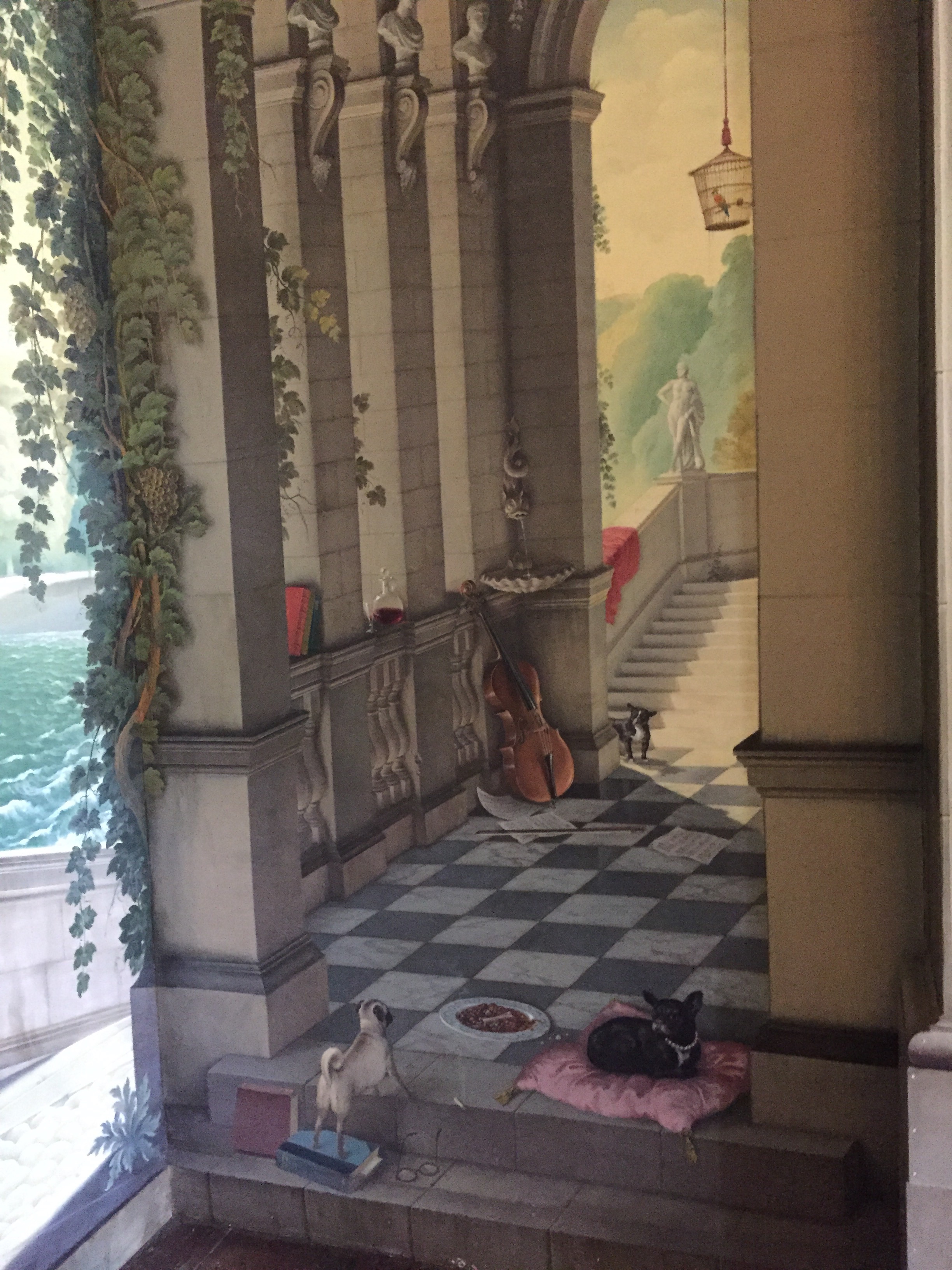We’re standing in front of Rex Whistler’s fantastic mural at Plas Newydd country house in Wales.