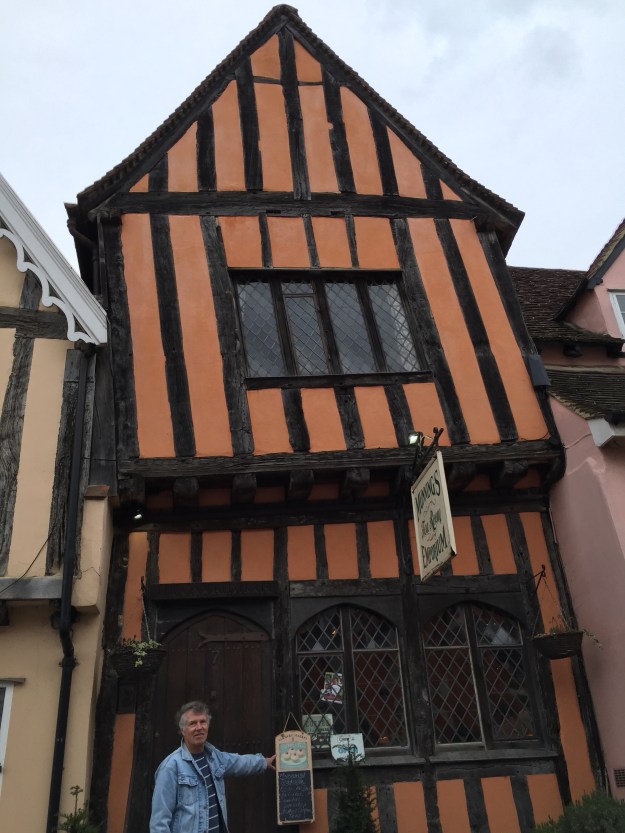 In 1415, St. George appeared in the sky above the battlefield at Agincourt, presumably helping King Henry V win his great victory over the French, against overwhelming odds. The photo above, again from the guidebook, is a 1998 copy of a gilded 15th century wood carving, now too fragile and precious to be on display.