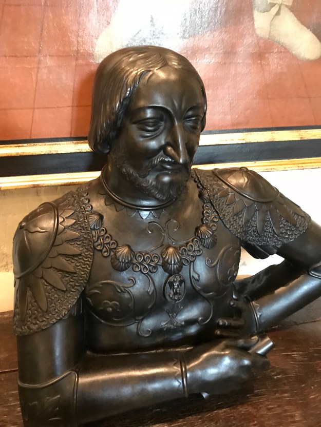 They’ve made the chateau really user-friendly, with very detailed placards in both French and English. The chateau information is my main source for Fouquet’s story. For example, a display shows some of the silver Fouquet would have owned: