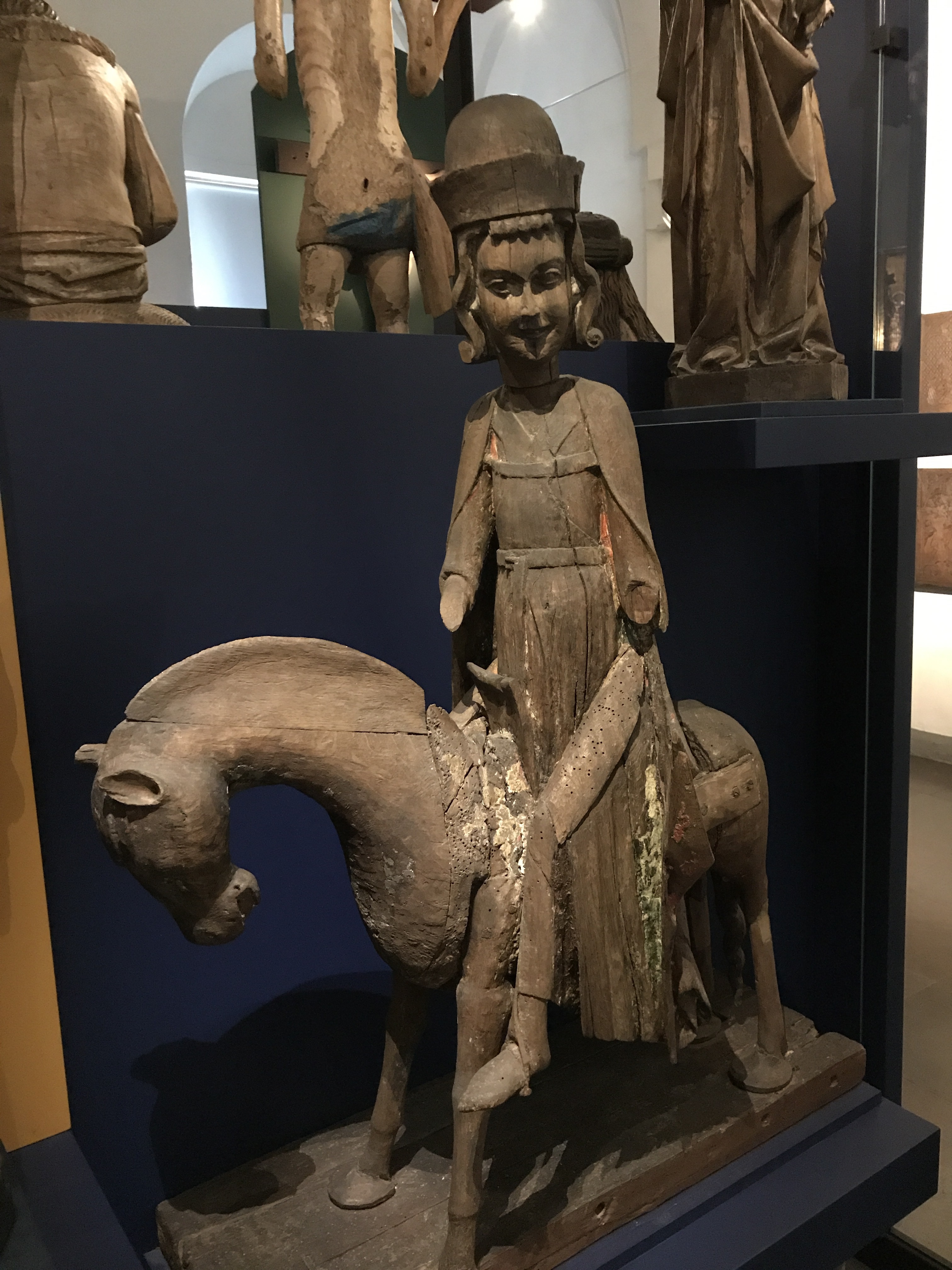 The museum also had wonderful religious wood carvings dating back as far as the 1200s. I liked St. Martin on his horse, about to share his warm cloak with a beggar. He was carved and assembled from several pieces of wood around 1320.