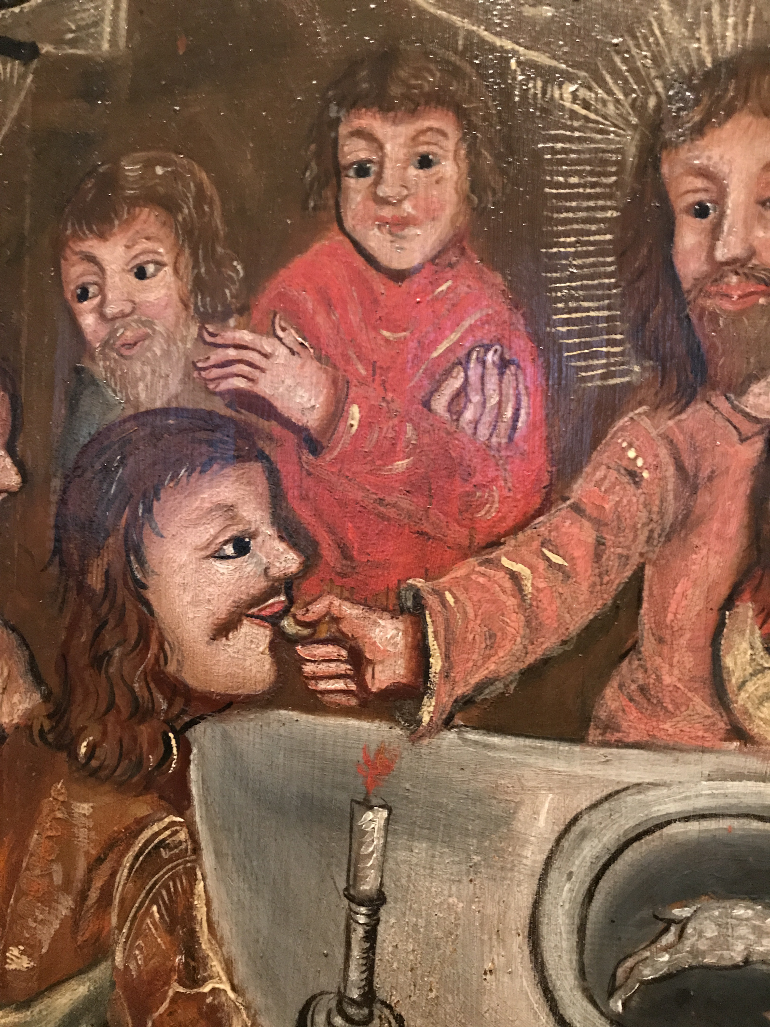 The faces are friendly and everyone is having a nice time together. There seem to be only 11 apostles. Apparently Judas has already left the building.