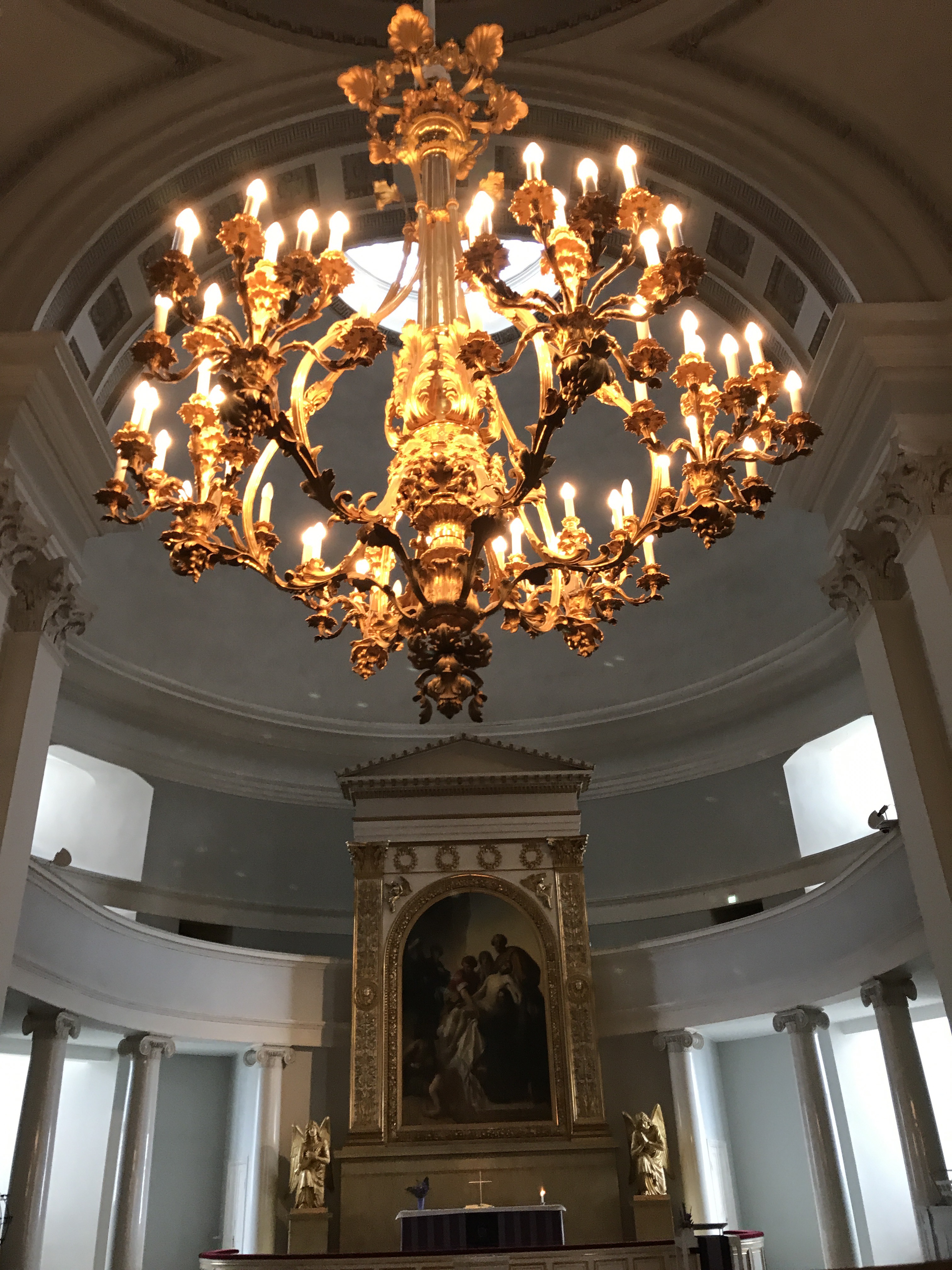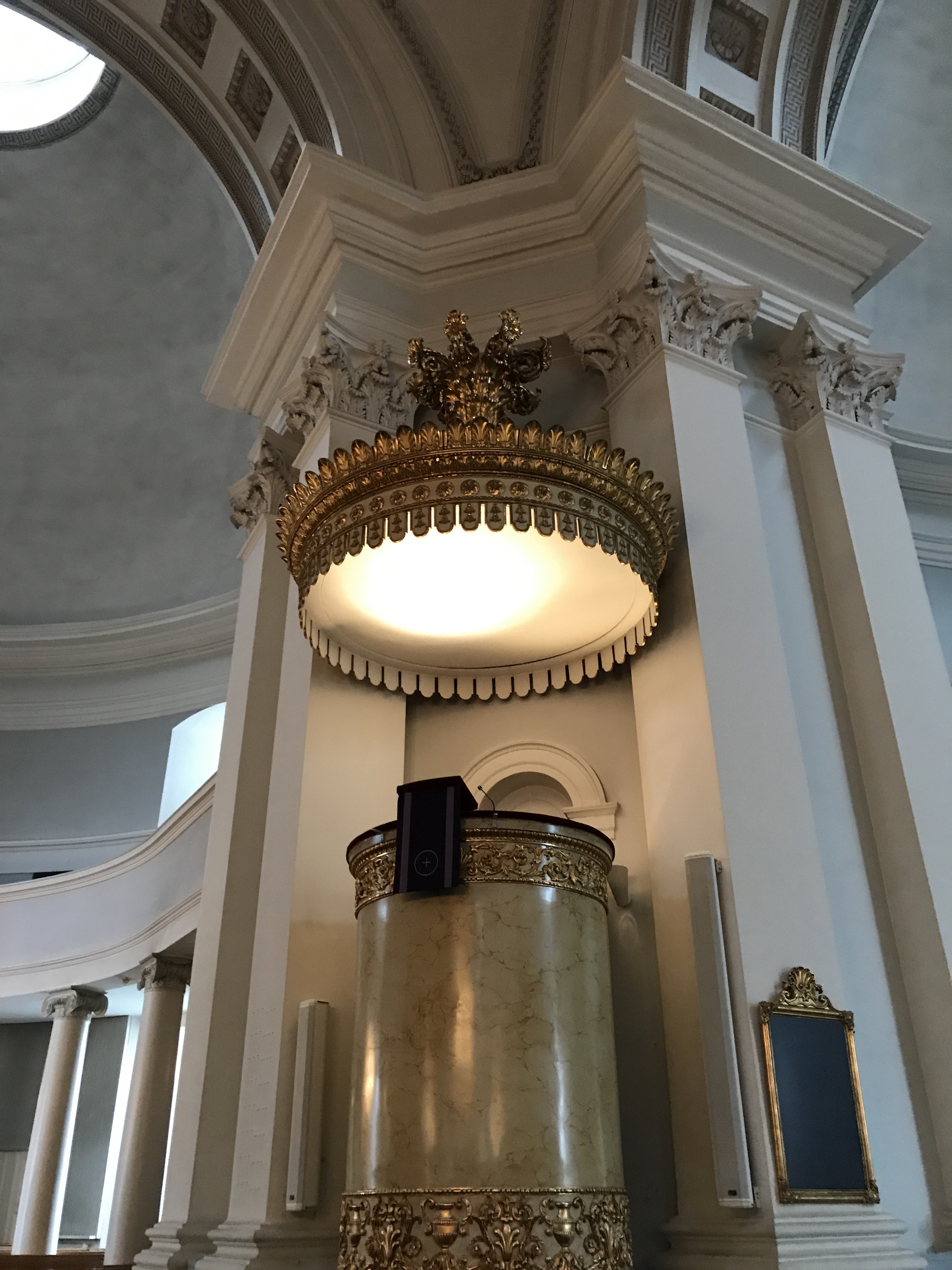 The Lutheran Helsinki Cathedral is impressive in its grand spaces, but very austere. Aside from Martin Luther gazing skyward, there’s not much to look at. And (at least on an admittedly quick stop) I didn’t see a children’s corner with little chairs, or posters about bake sales, or ladies dusting things, or a single clergy person.