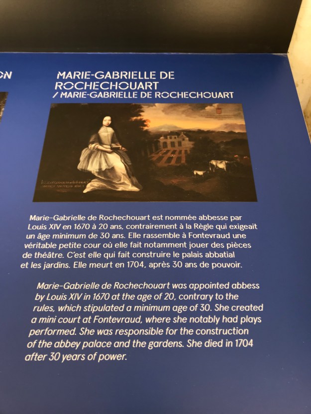 There were actually four different orders of religious people at Fontevraud, one of them made up of male monks under the authority of the nuns. Fontevraud was very unusual in that respect. It was set up as a kind of utopian community run by women. I’m all for that! But there’s very little information posted about the history of the Abbey.