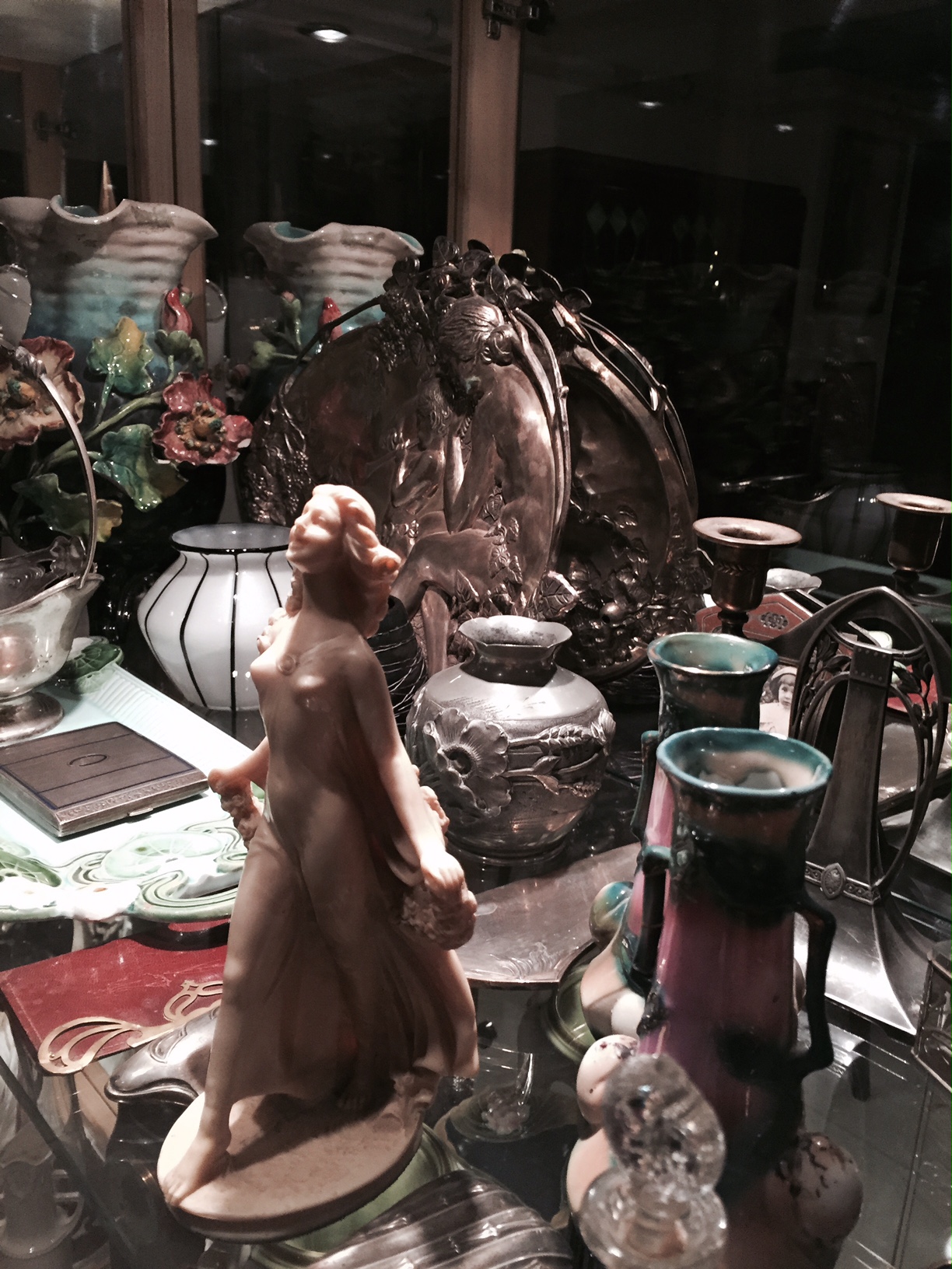 Budapest’s House of Art Nouveau is a delightful conglomeration of the possessions of ordinary people during the period of peace and prosperity between the 1890s and the outbreak of the First World War. This approximate period was known in France as Le Belle Epoque; i wrote about it in several posts about the Paris 1900 Exhibition. The items I admired last spring in Paris were for the elite; the ones I admired in Budapest were decidedly more humble, but just as charming and thought-provoking.