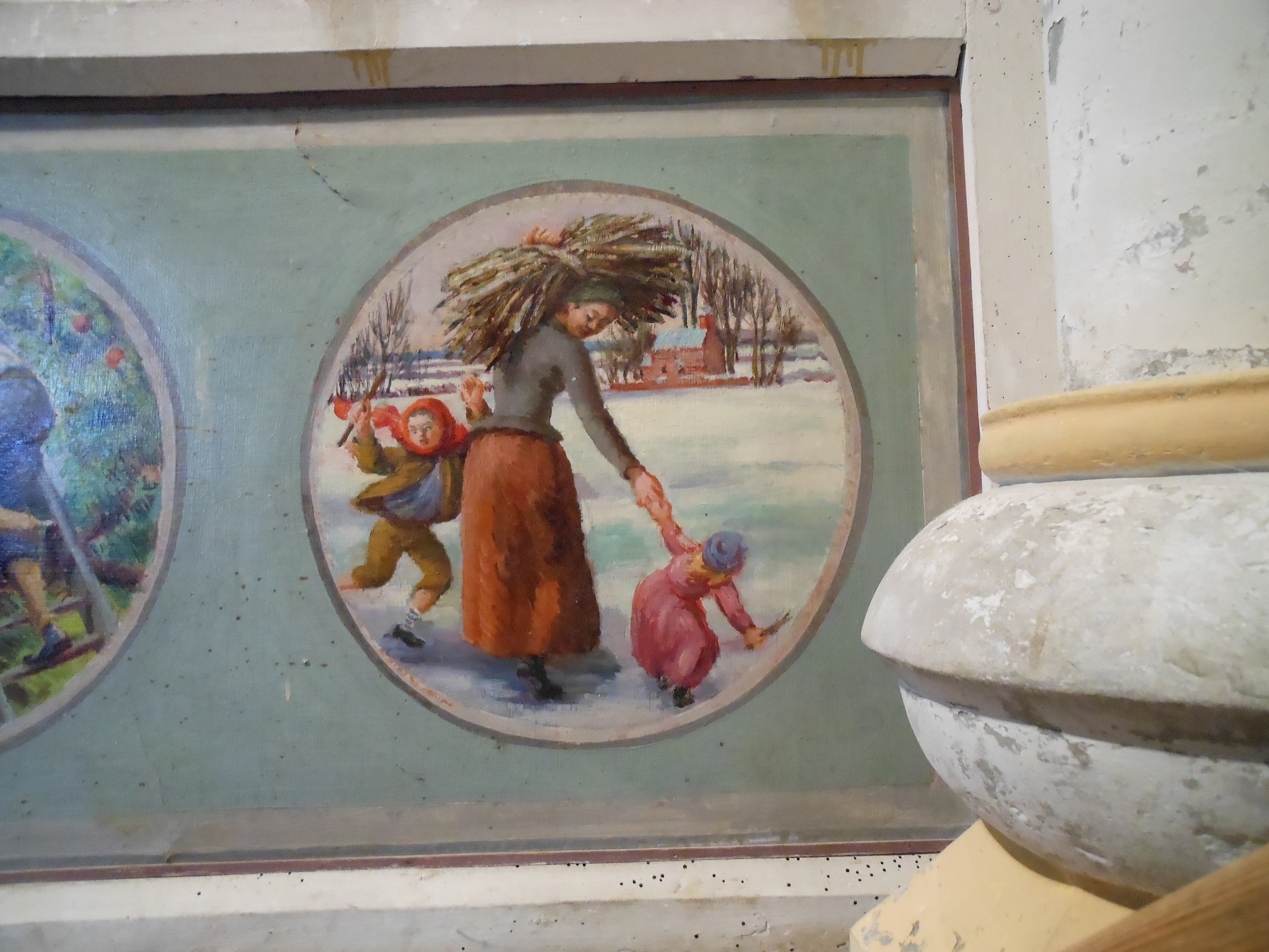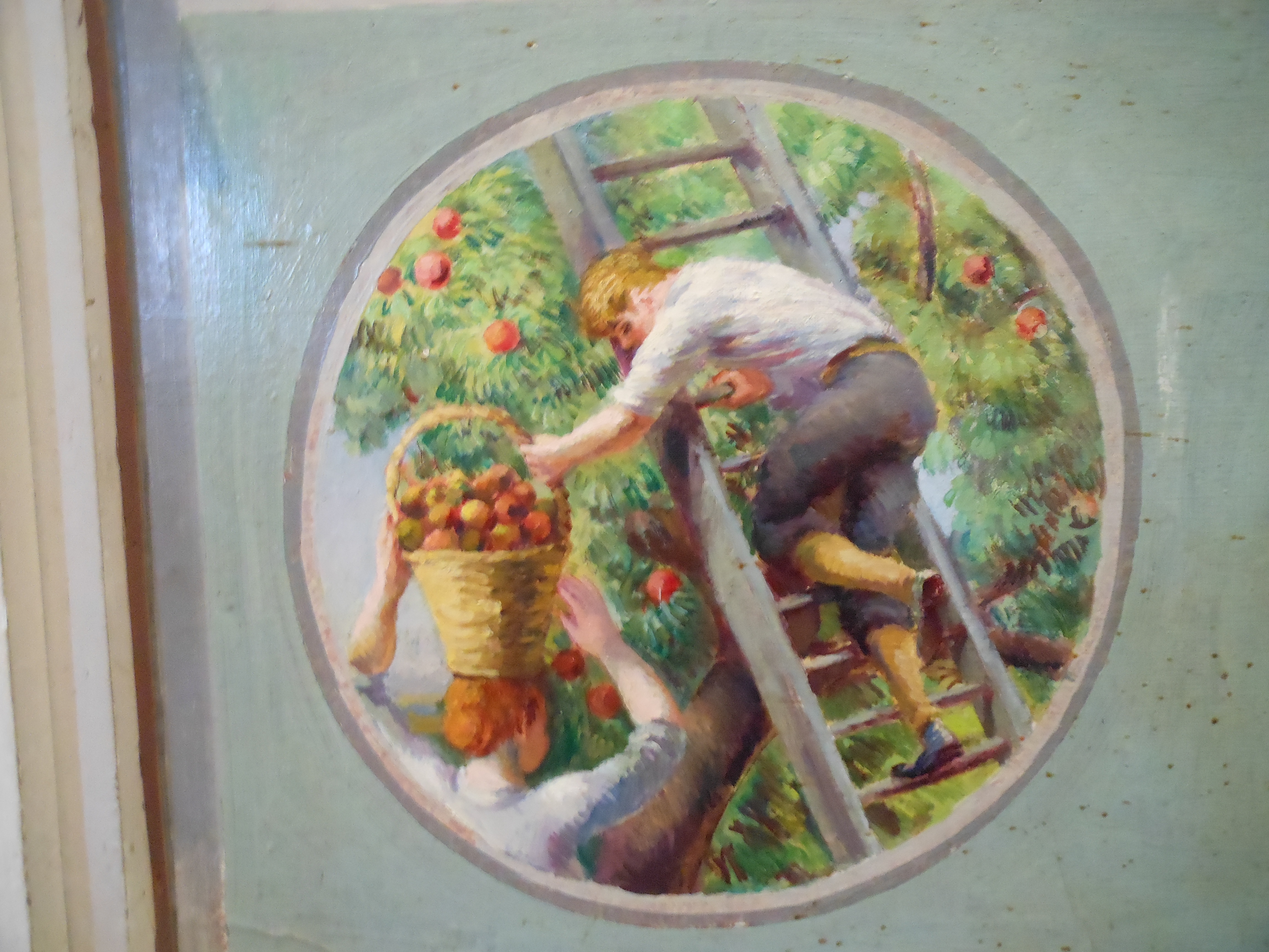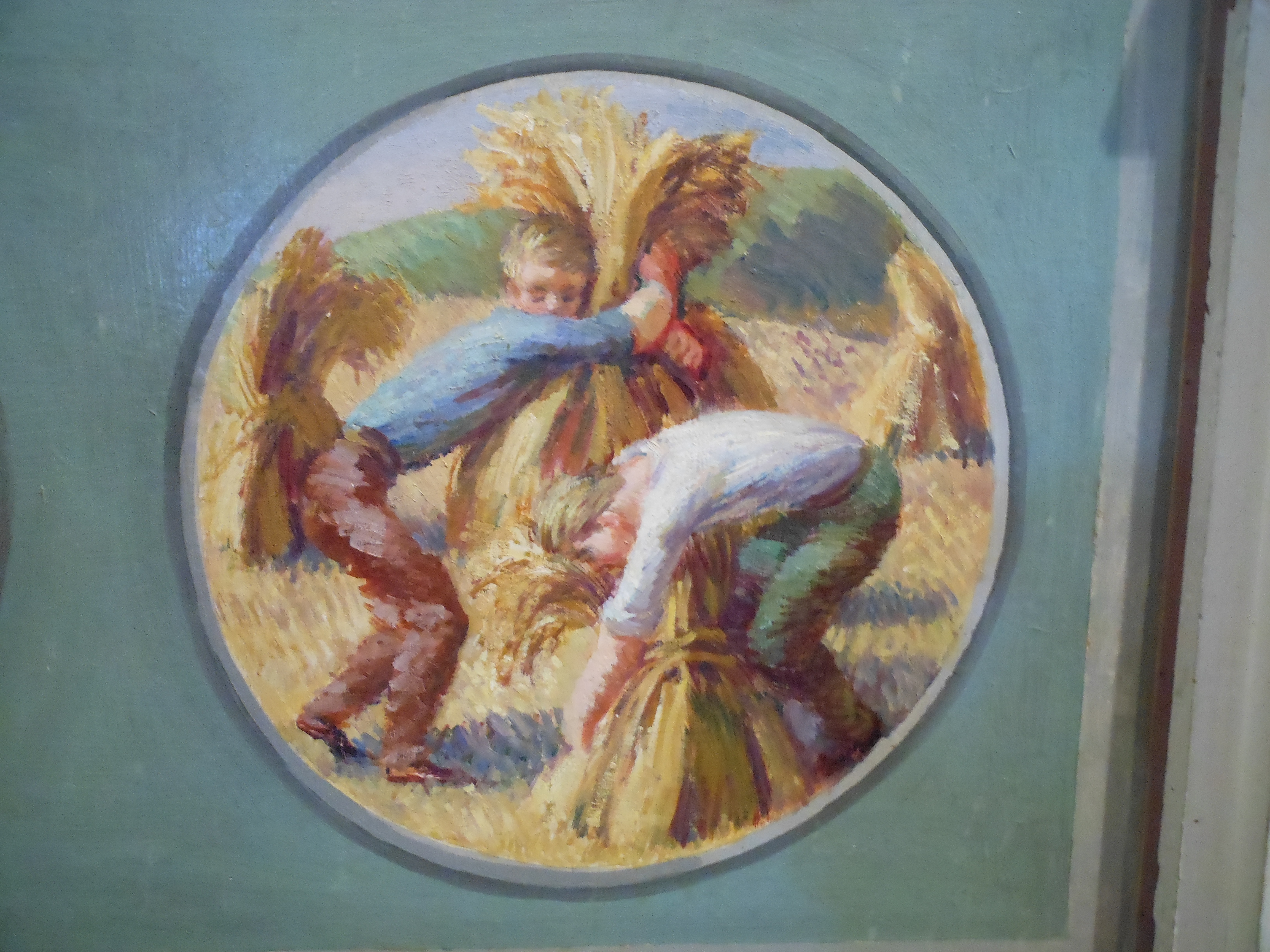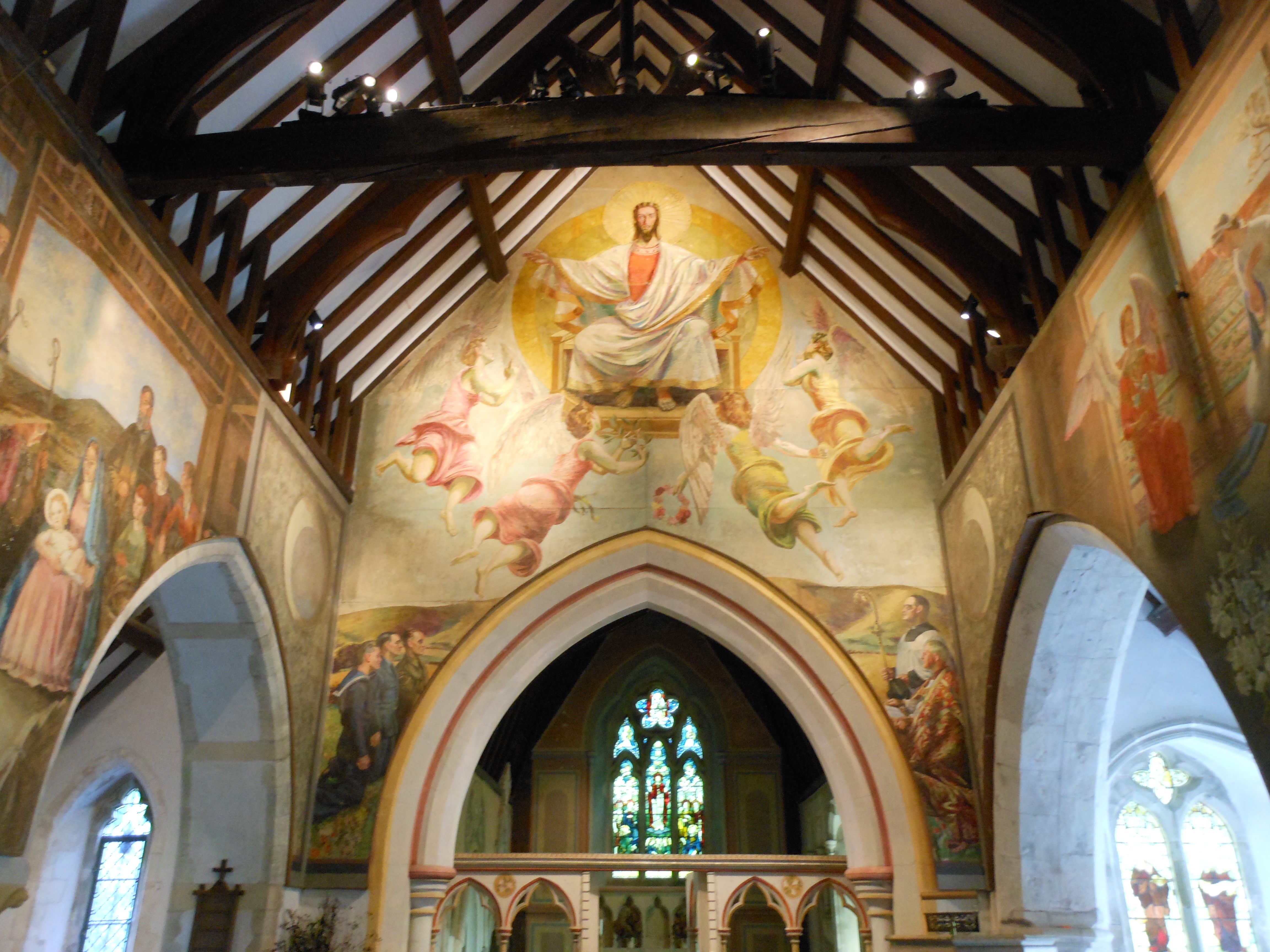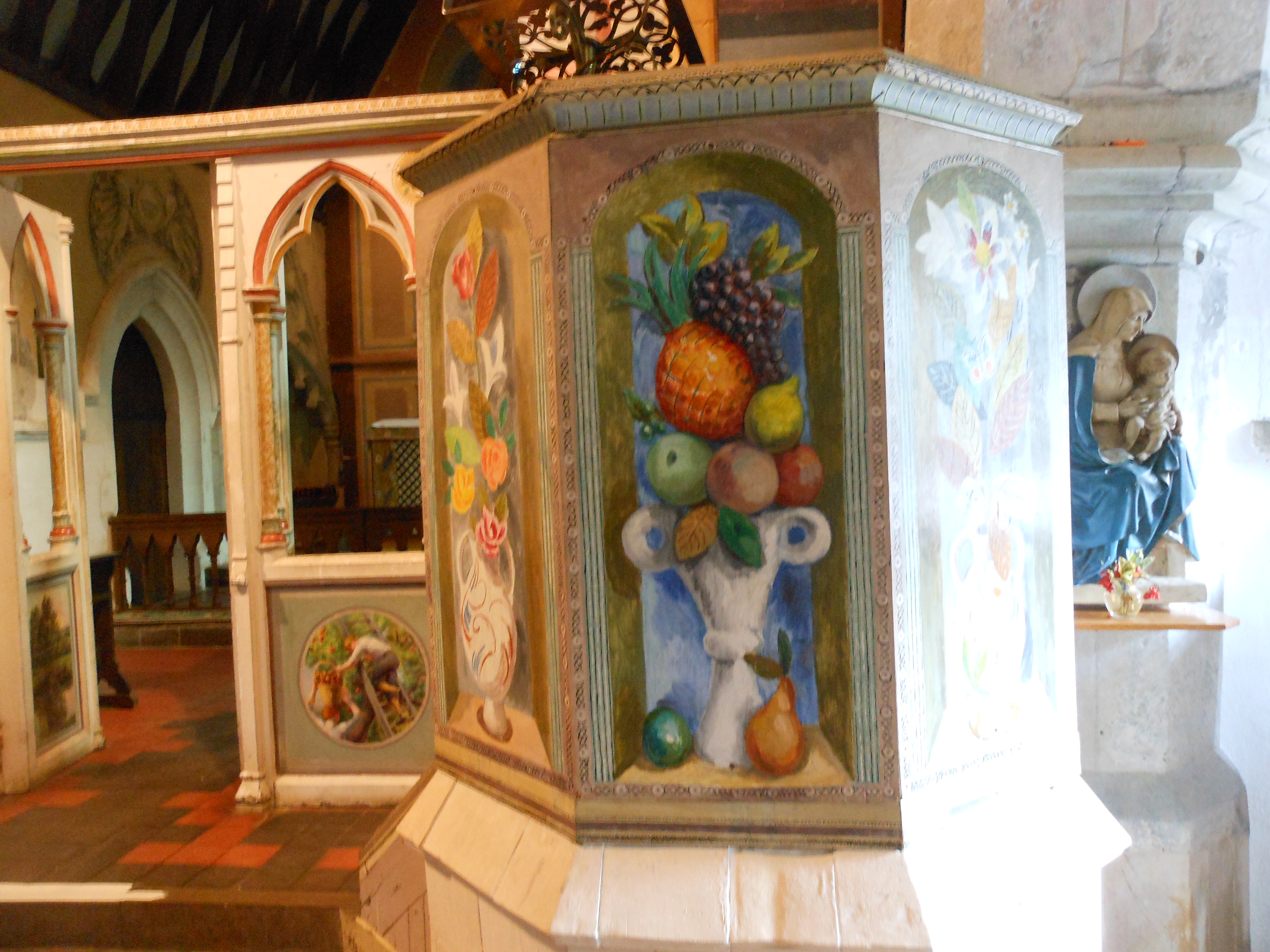 In 1941, several artists from the group were hired to paint new murals and decorations in the ancient church.  These are some of the few remaining works of Vanessa Bell, Duncan Grant, and Quentin Bell.  They depicted themselves and their friends, both as country laborers and as figures in sacred scenes.